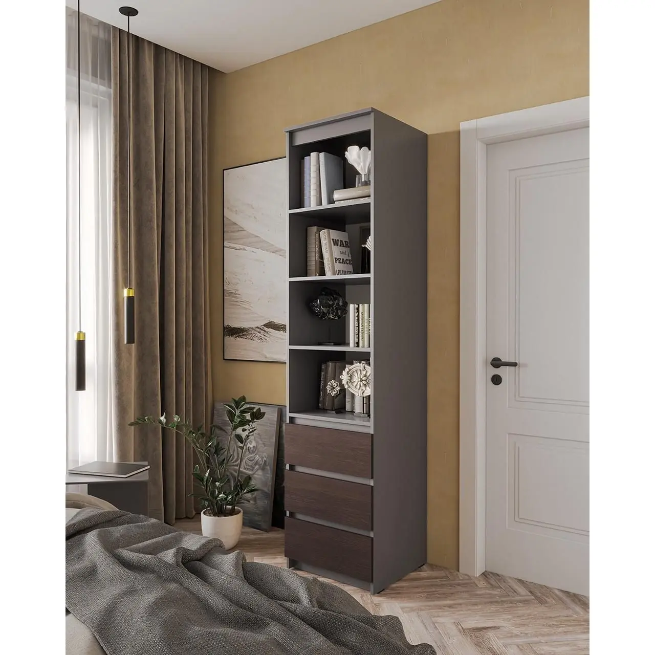 Пенал відкритий з шухлядками Moreli T-219 500x2117x498 мм Антрацитовий/Венге магія (mo-t219-antracit-venge)