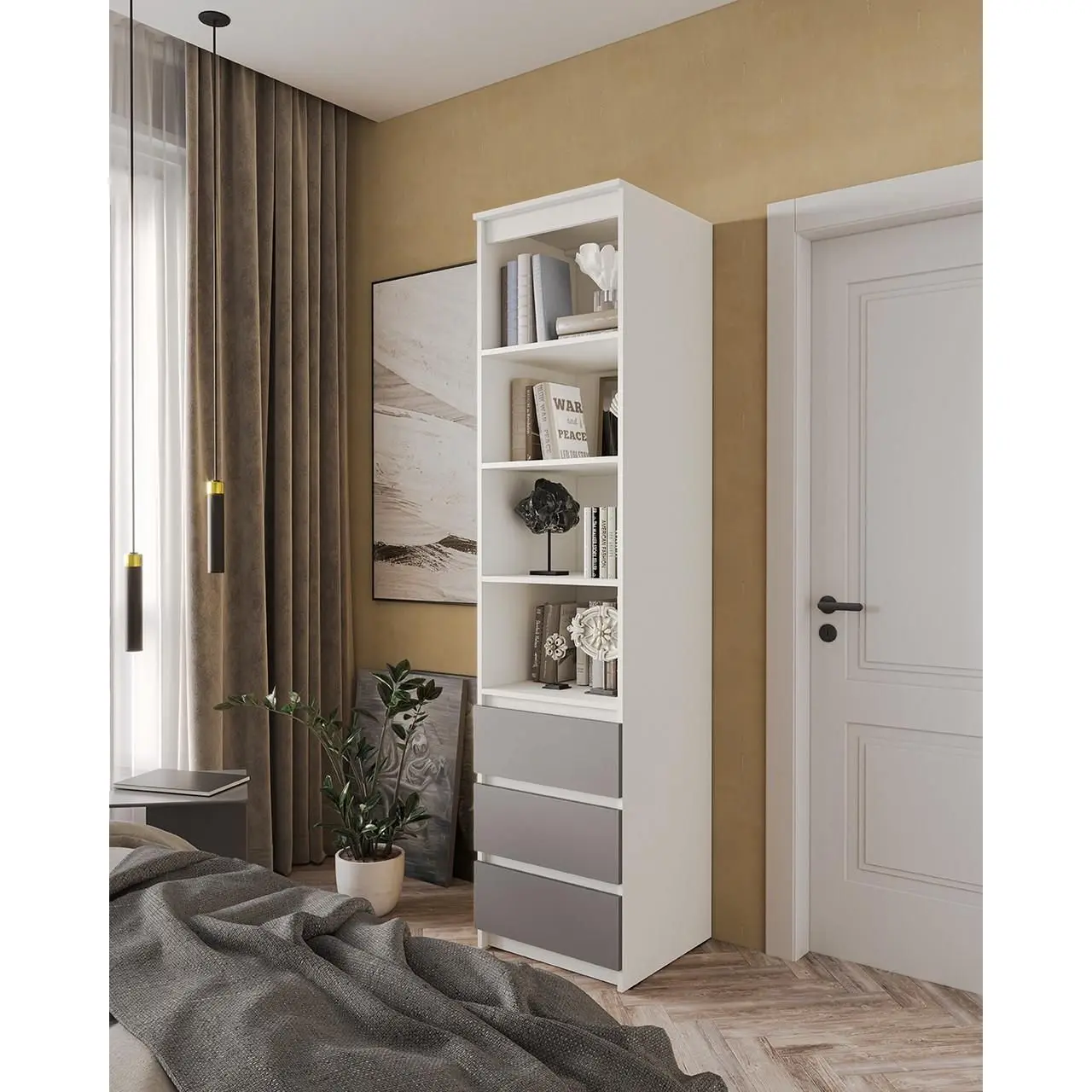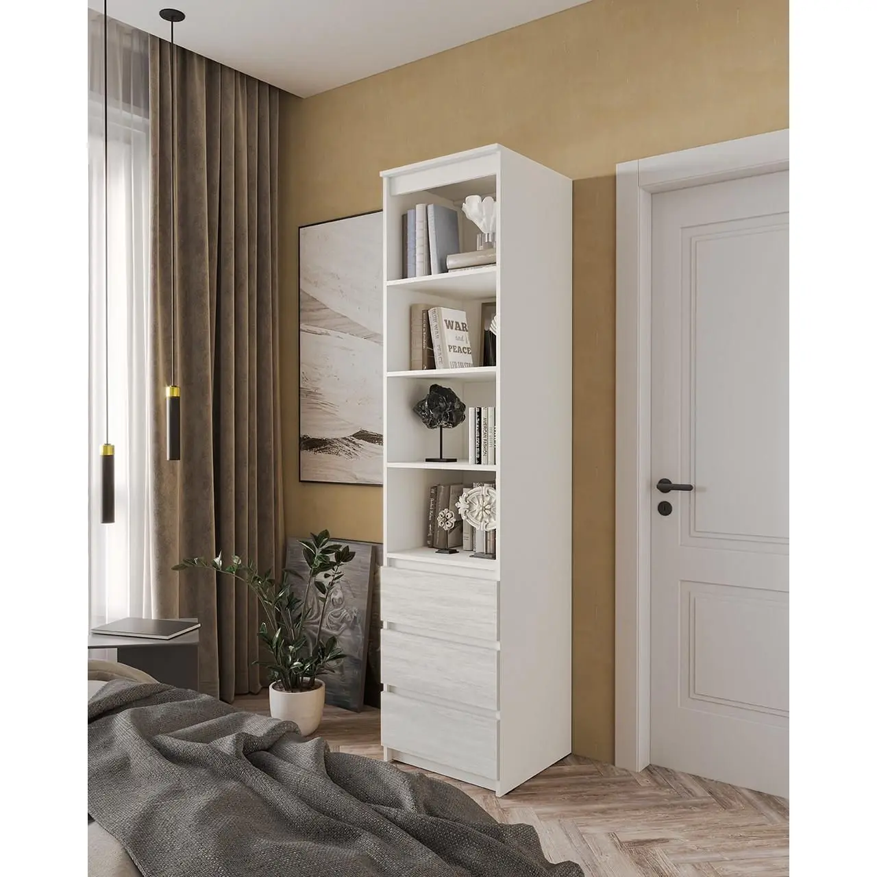 Пенал відкритий з шухлядками Moreli T-219 500x2117x498 мм Білий/Бетон (mo-t219-white-beton)
