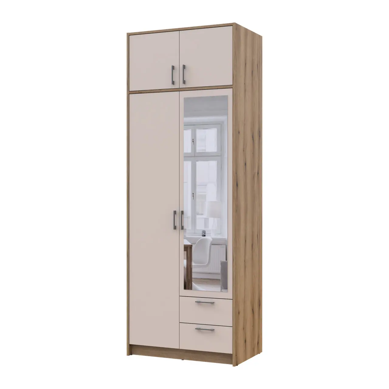 Doros Шафа для одягу Ронді з дзеркалом і антресолею 2 ДСП 82х52х236 Кашемір, Дуб Артизан