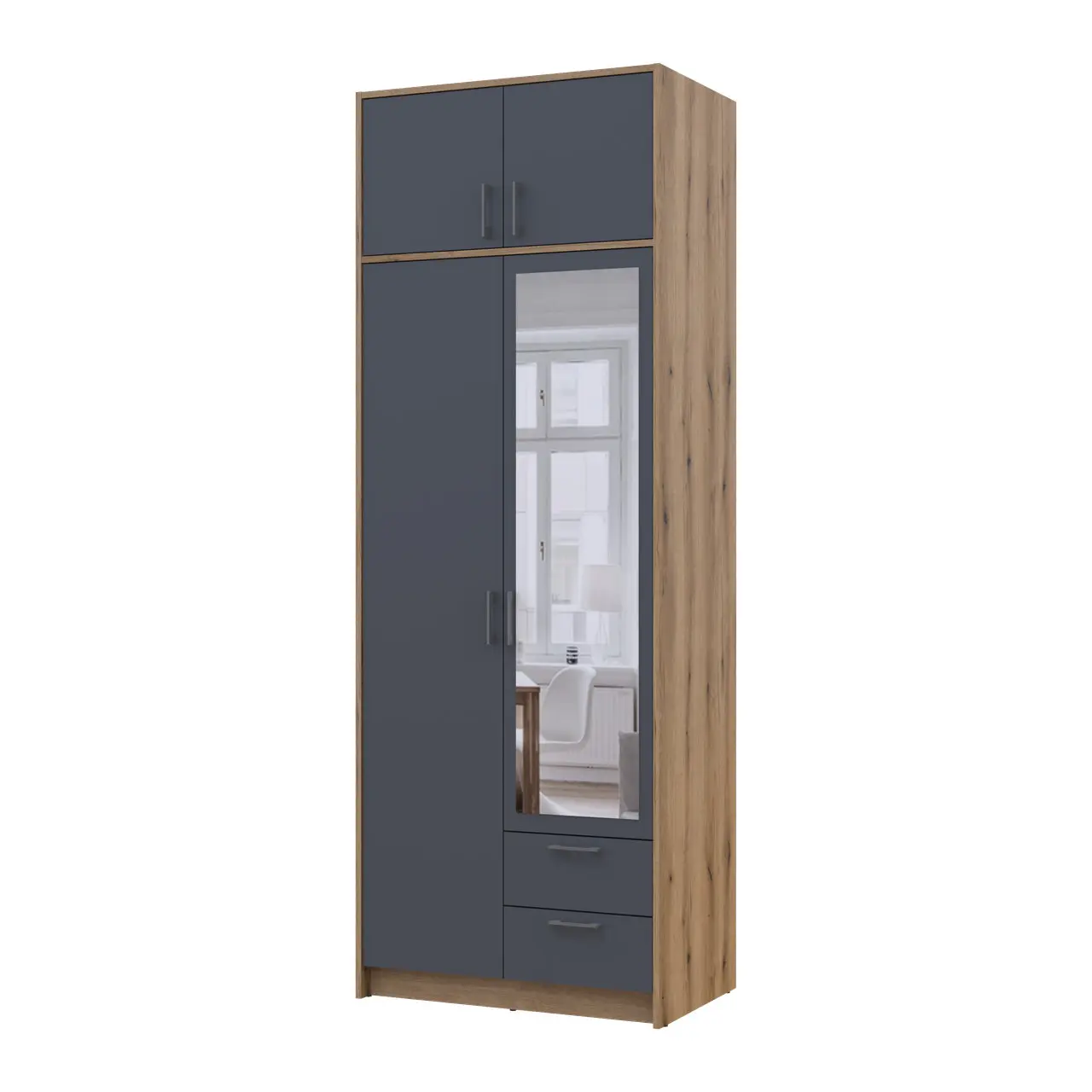 Doros Шафа для одягу Ронді з дзеркалом і антресолею 2 ДСП 82х52х236 Графіт, Дуб Артизан