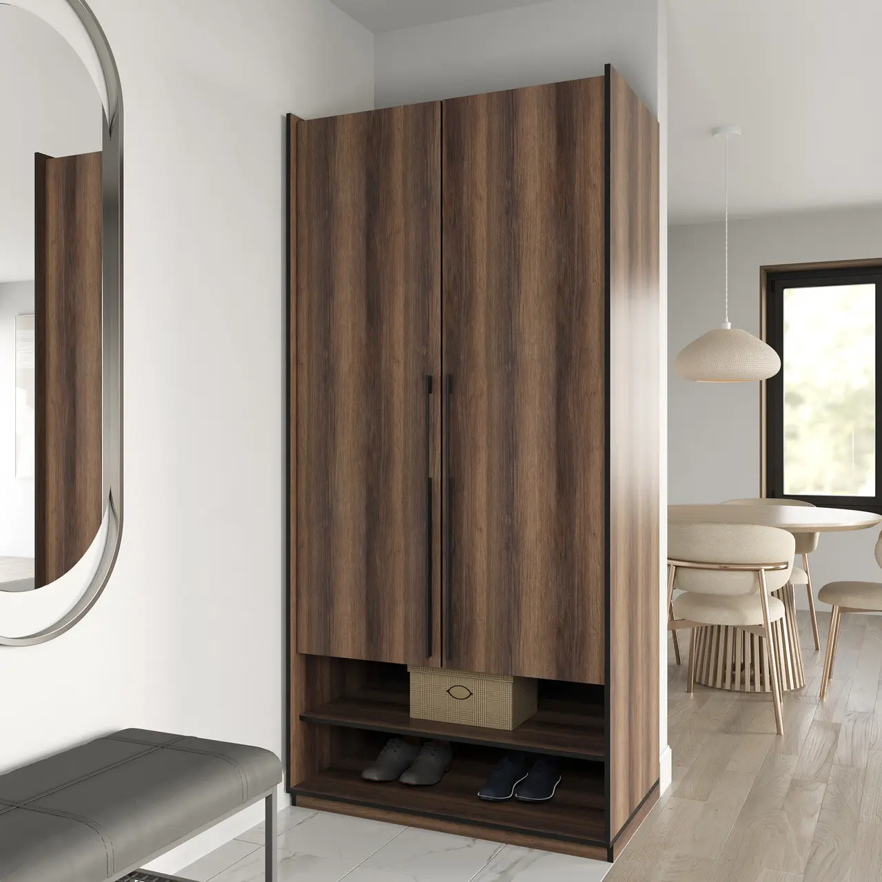 Шафа для одягу Flamecame з поличками на 2 двері у передпокій FR-03 Венге