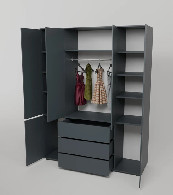 Шафа для одягу, колір Антрацит, 1400х500х2100, Валді - 6