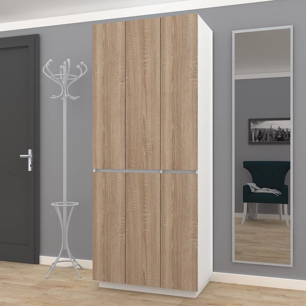 Шафа для одягу VAYS в спальню з 3 шухлядами, штангою та полицями, без ручок R9+R22 Дуб Сонома-Білі планки