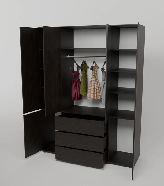 Шафа для одягу VAYS в спальню з 3 шухлядами, штангою та полицями, без ручок R9+R22 Венге Темний