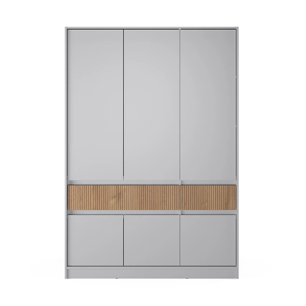 Шафа для одягу VAYS в спальню з 3 шухлядами, штангою та полицями, без ручок R9+R22 Бетон-Білі планки