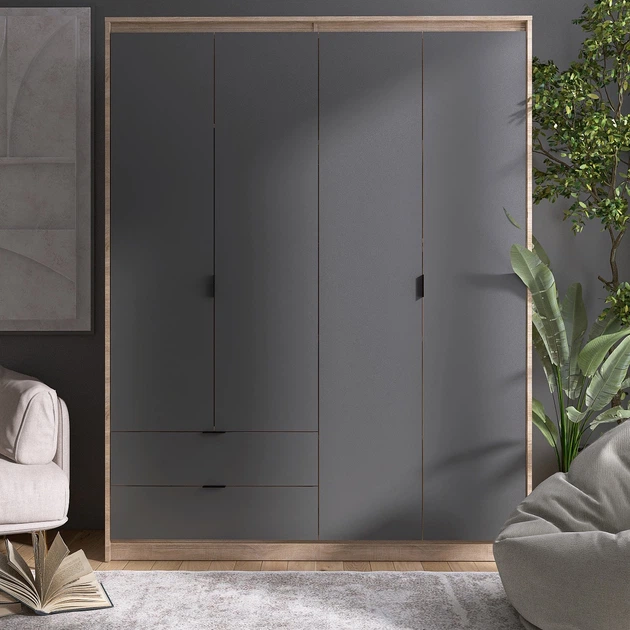 Шафа розпашна для одягу з висувними шухлядами (полиці- полиці) Еверест Сіті-1600 160,2х50х204,6 см Дуб сонома/Графіт (TQP-07