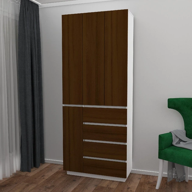 Сучасна шафа розпашна 90 см для верхнього одягу та взуття з полицями штангою шухлядами висока вузька в передпокій коридор ЛД
