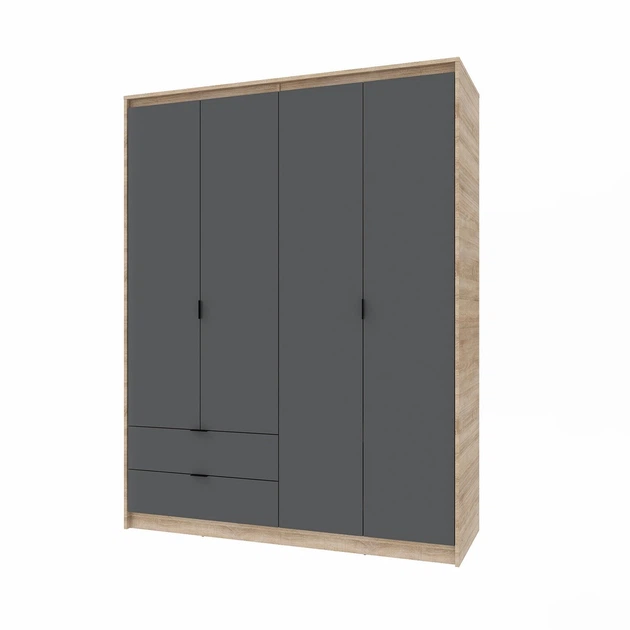 Шафа розпашна для одягу з висувними шухлядами (штанга - полиці) Еверест Сіті-1600 160,2х50х204,6 см Дуб сонома/Графіт (DTM-0
