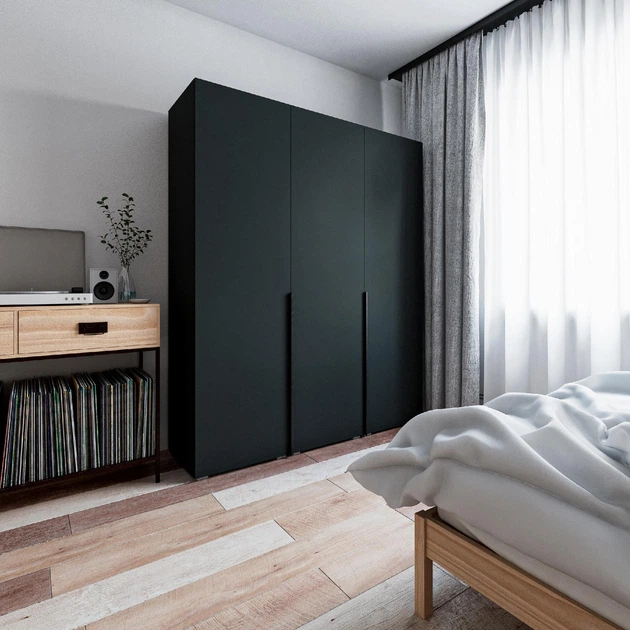 Шафа для одягу VAYS, зі штангами та полицями, 3 двері з чорними ручками D-10 Антрацит