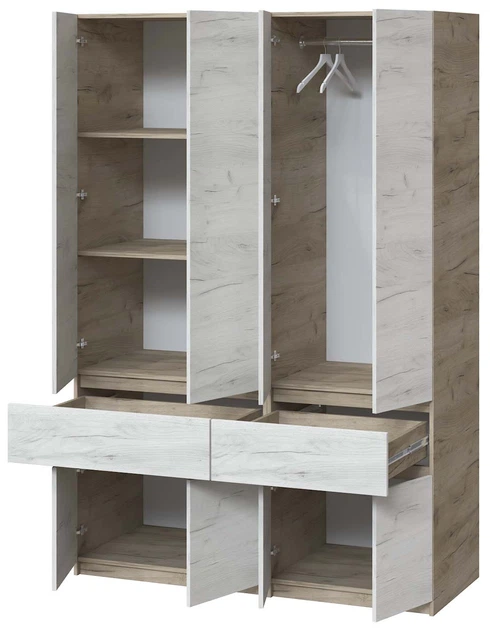 Шафа для одягу з полицями Майстер Форм Брайт 1400х520х2000 мм Дуб крафт сірий/Дуб крафт білий (31629)