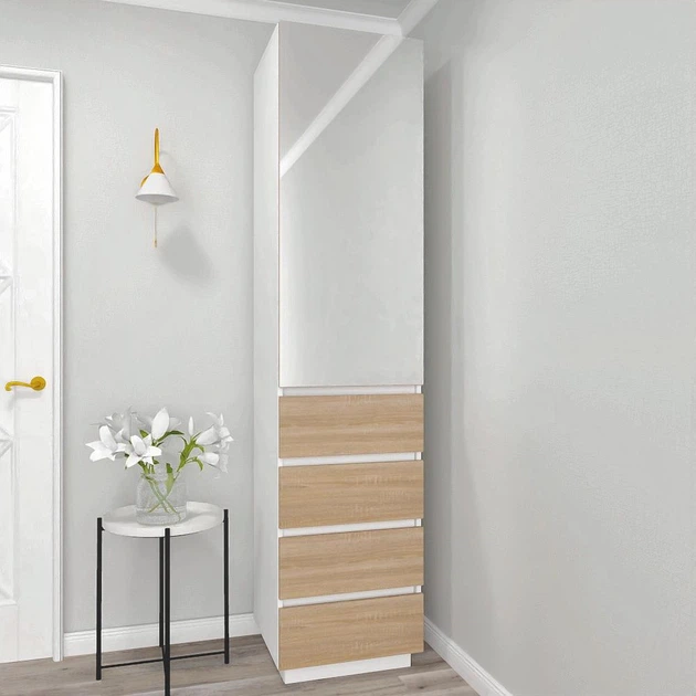 Сучасна шафа пенал для одягу з дзеркалом шириною 50 см зі штангою та шухлядами висока підлогова закрита в кімнату спальню ві