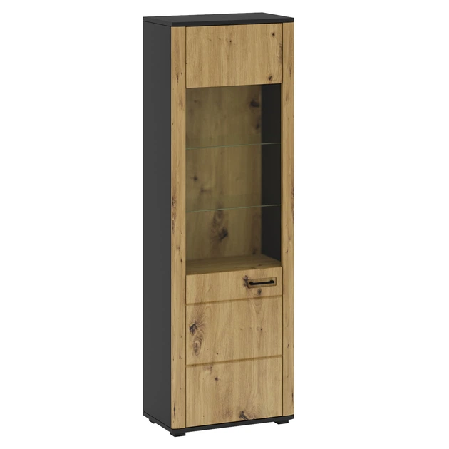 Пенал вітрина у вітальню із ДСП+МДФ 1В лівий Martin A1 689x372x2105 мм чорний/дуб артизан Blonski