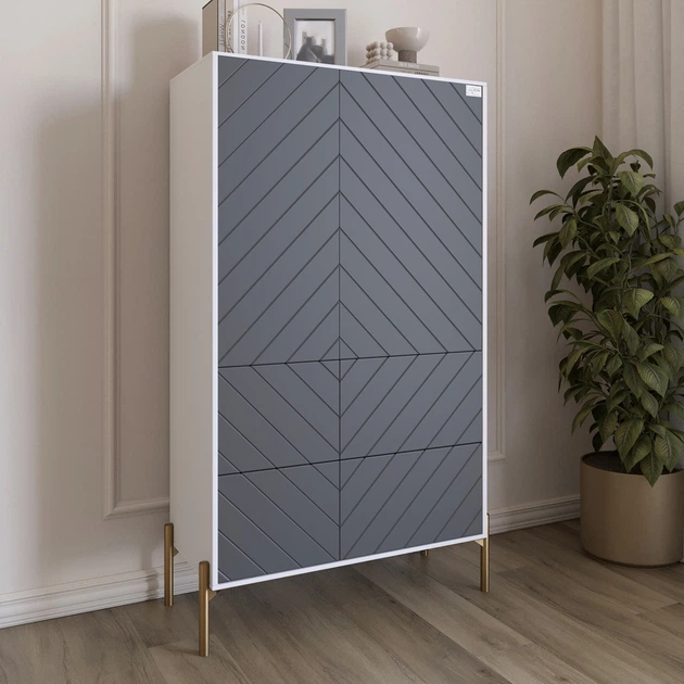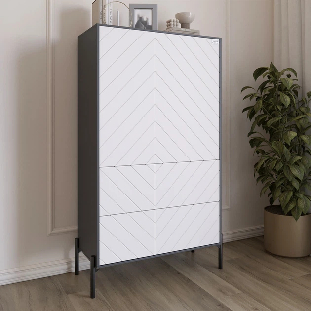 Комод-пенал з рельєфним оздобленням фасаду та чорними металевими ніжками LION Амарант 84x40x150 см Антрацит/Білий (LION-0421