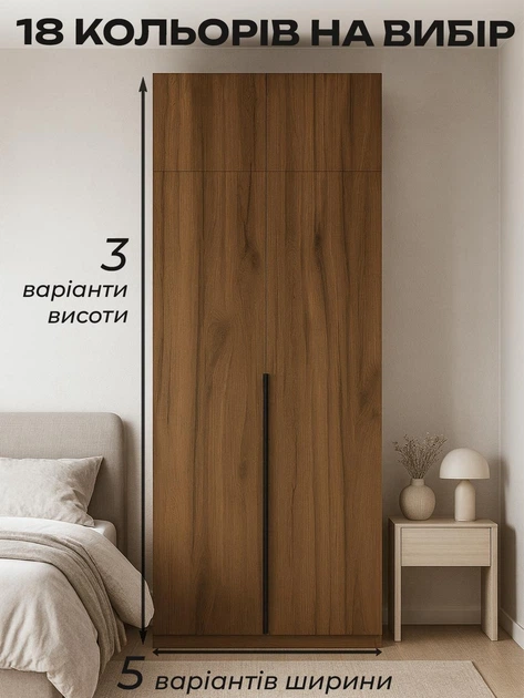 Шафа висока дводверна платтяна розпашна з антресоллю під стелю для одягу глибиною 55 см в маленьку спальню вітальню дитячу к