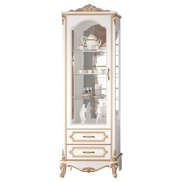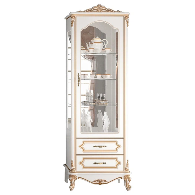 Пенал-вітрина 1В2Ш правий Болонія Меблі Сервіс Білий/Золота патина (ДСП/МДФ/скло/дзеркало)