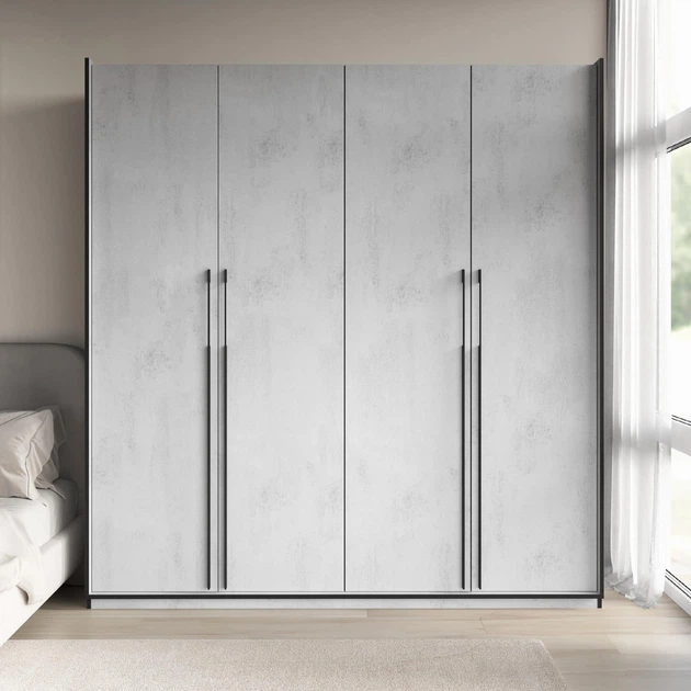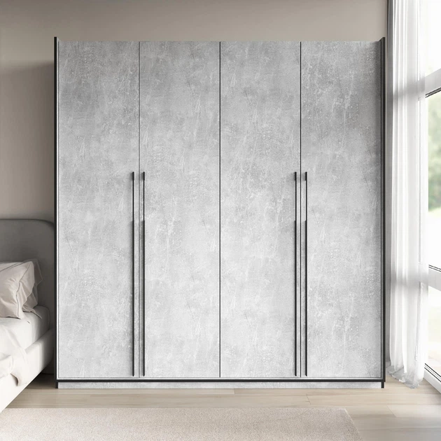 Шафа розпашна чотиридверна зі штангами та полицями для одягу в спальню 1969x2100x570 мм Бетон тефра (mr-18-bf)