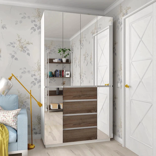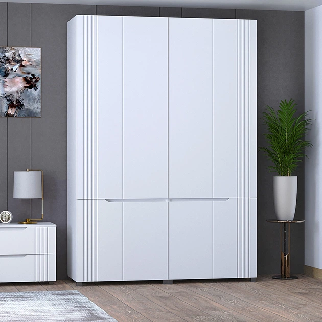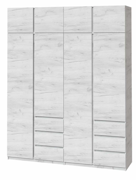 Стильна висока шафа розпашна чотиридверна 120 см для одягу з полицями і штангою з шухлядами без ручок в спальню ЛДСП FLSH Ho