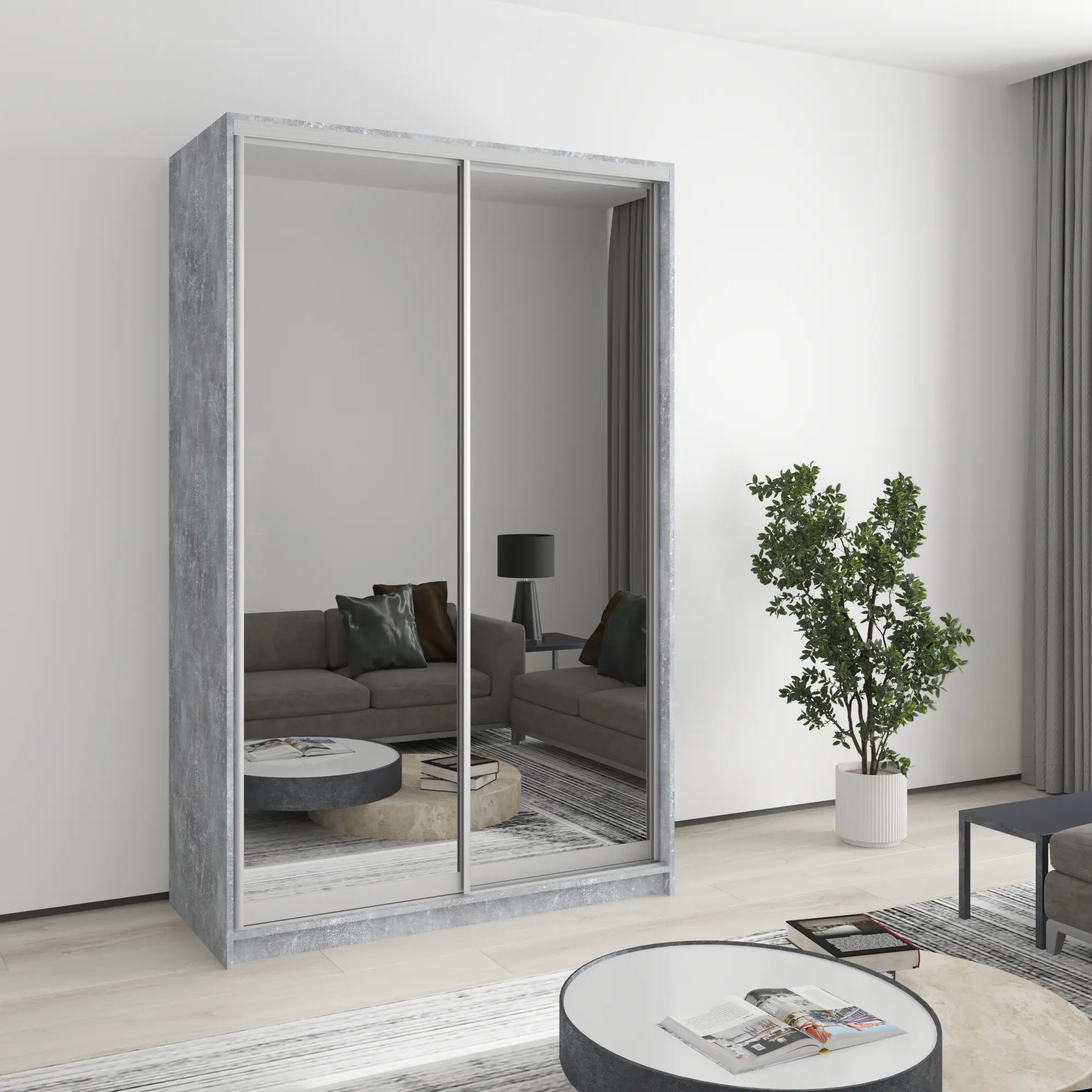 Шафа-купе дводверна MebelStar Стандарт AL 2 Дзеркала 130x60x210 см Бетон (MBS-2552)
