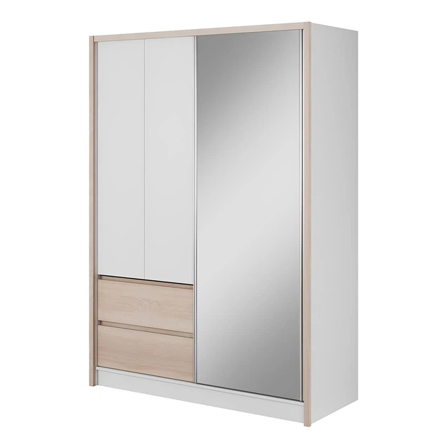 Шафа напівкупе для одягу Сара / Sara 150 3-дверна з дзеркалом Білий/дуб сонома 154х61х214 см. Perfect Home