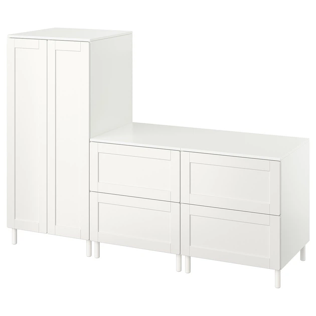 Гардероб IKEA ЗМОСТАД/ОПХУС, білий з рамою, з 2 комодами, 180x57x133 см, 894.850.32