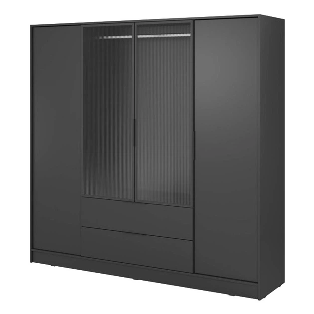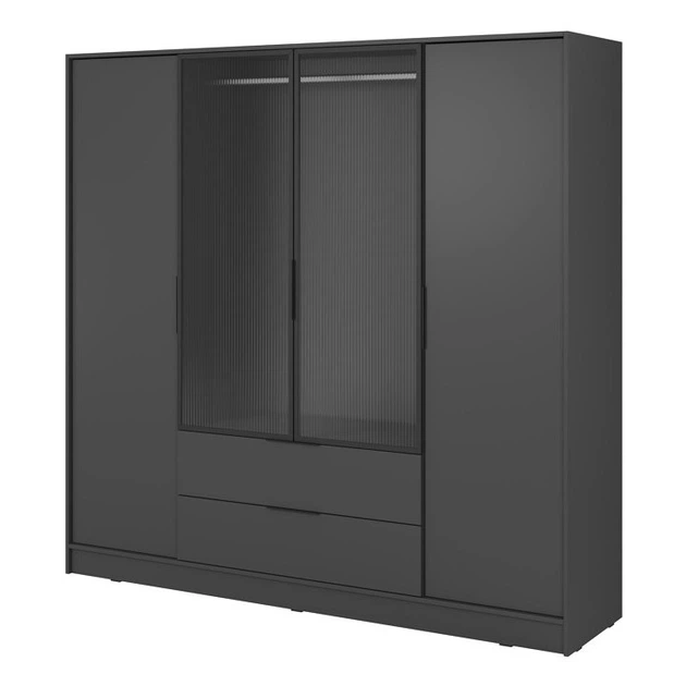 Гардеробна Келлі / Kelly 4DRM 4-дверна з центральними прозорими дверцятами та додатковими полицями Графіт 206х51х200 см. Per