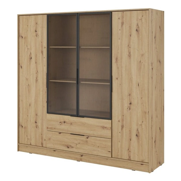 Гардеробна Келлі / Kelly 4DRM 4-дверна з центральними прозорими дверцятами та додатковими полицями Дуб артизан 206х51х200 см
