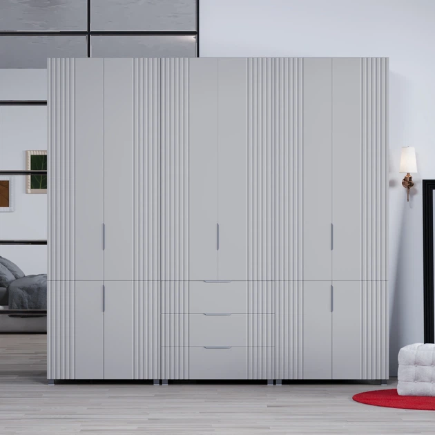 Гардеробна Келлі / Kelly 4DRM 4-дверна з центральними прозорими дверцятами та додатковими полицями Кашемір 206х51х200 см. Pe