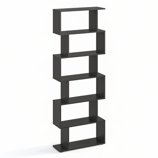 Книжковий стелаж S-подібної форми з 6 рівнями KOMTO Shelf 190S Чорний (p-186-365)