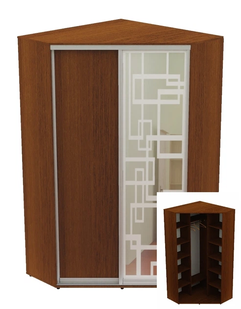 Шафа-купе дводверна кутова Алекса 100*100*220 Горіх лісовий ДСП/Дзеркало з піскострумним малюнком Угол-1