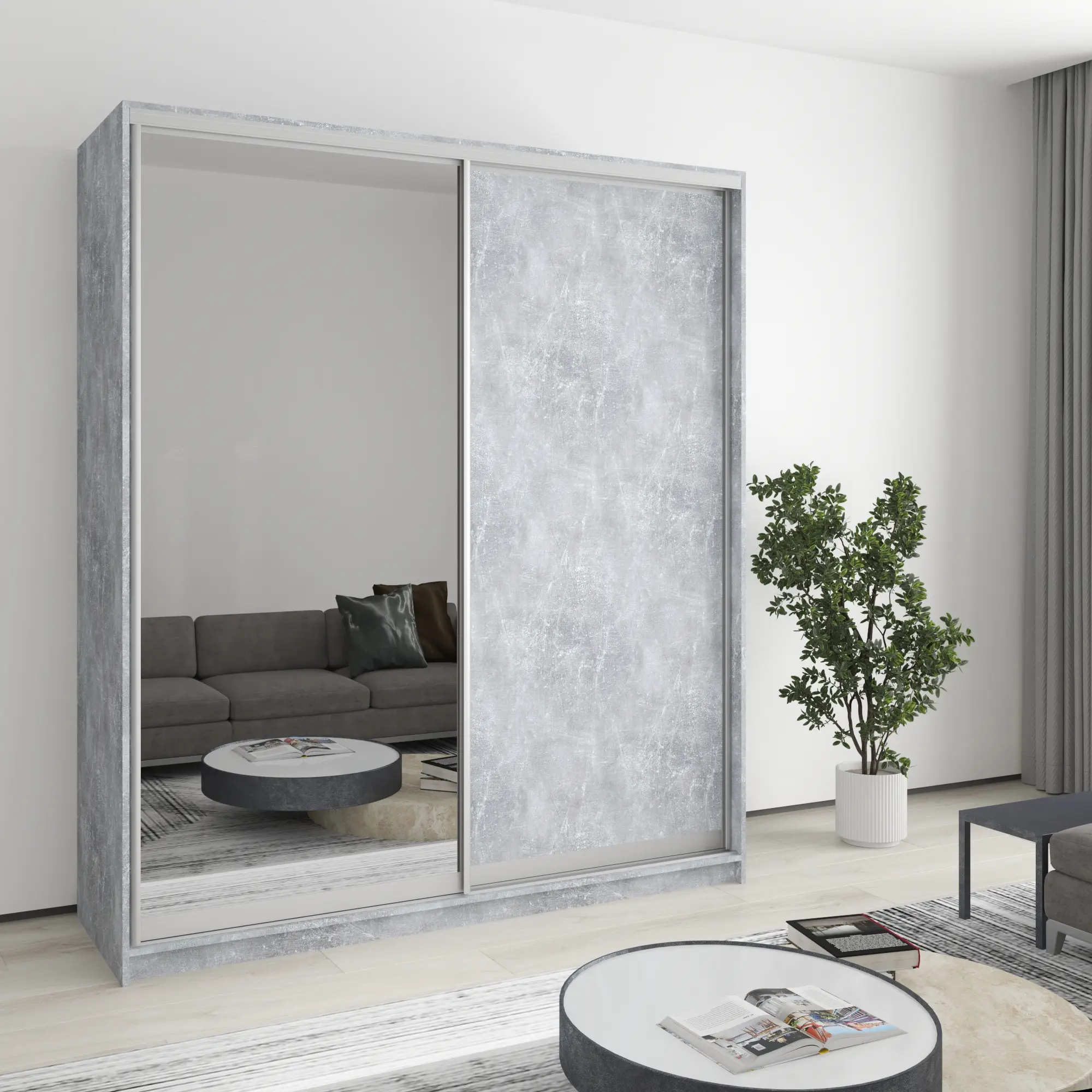 Шафа-купе дводверна MebelStar Комбо AL ДСП/Дзеркало 150x60x210 см Бетон (MBS-2762)