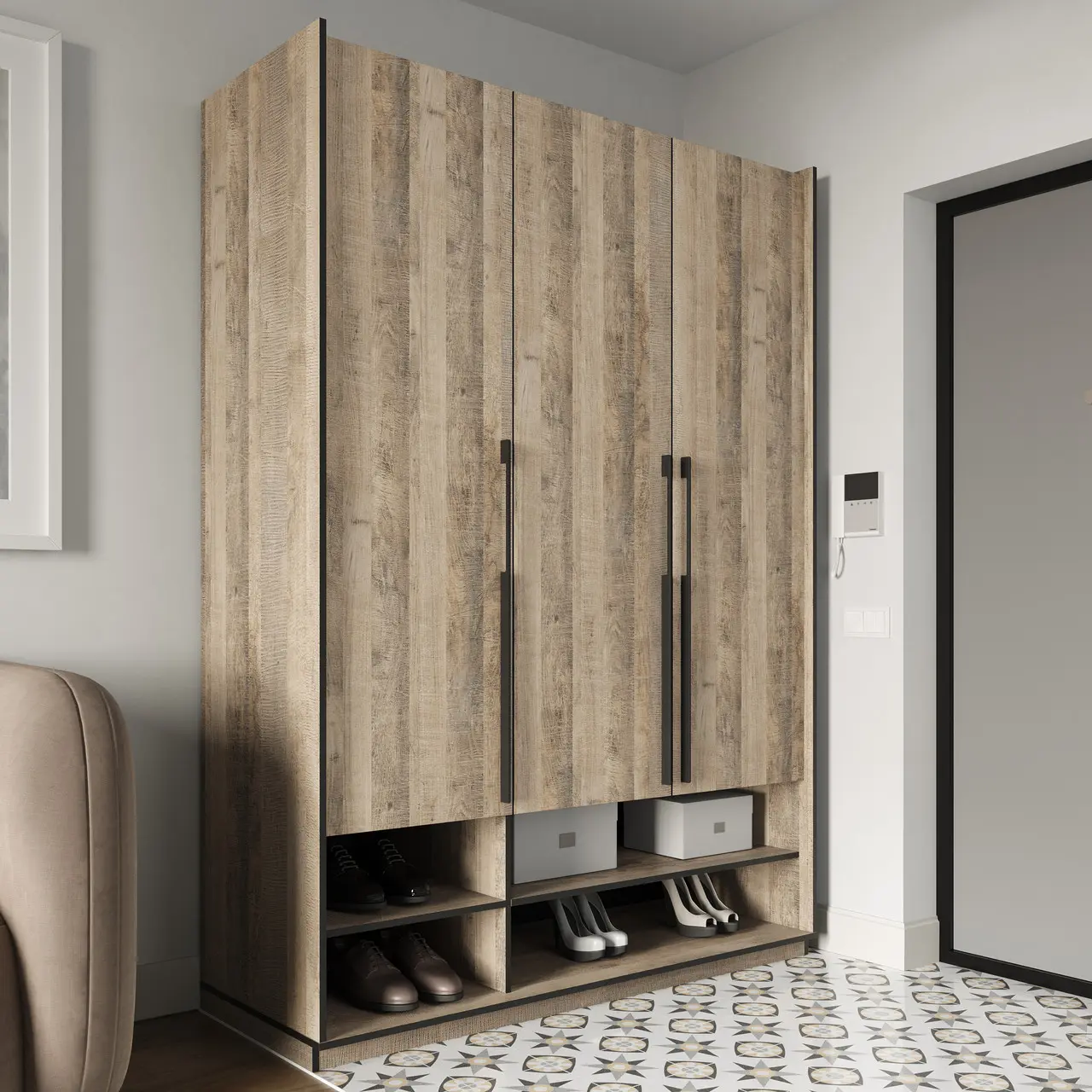 Шафа для одягу Flamecame з поличками та штангою на 3 двері у передпокій FR-06 Тефра