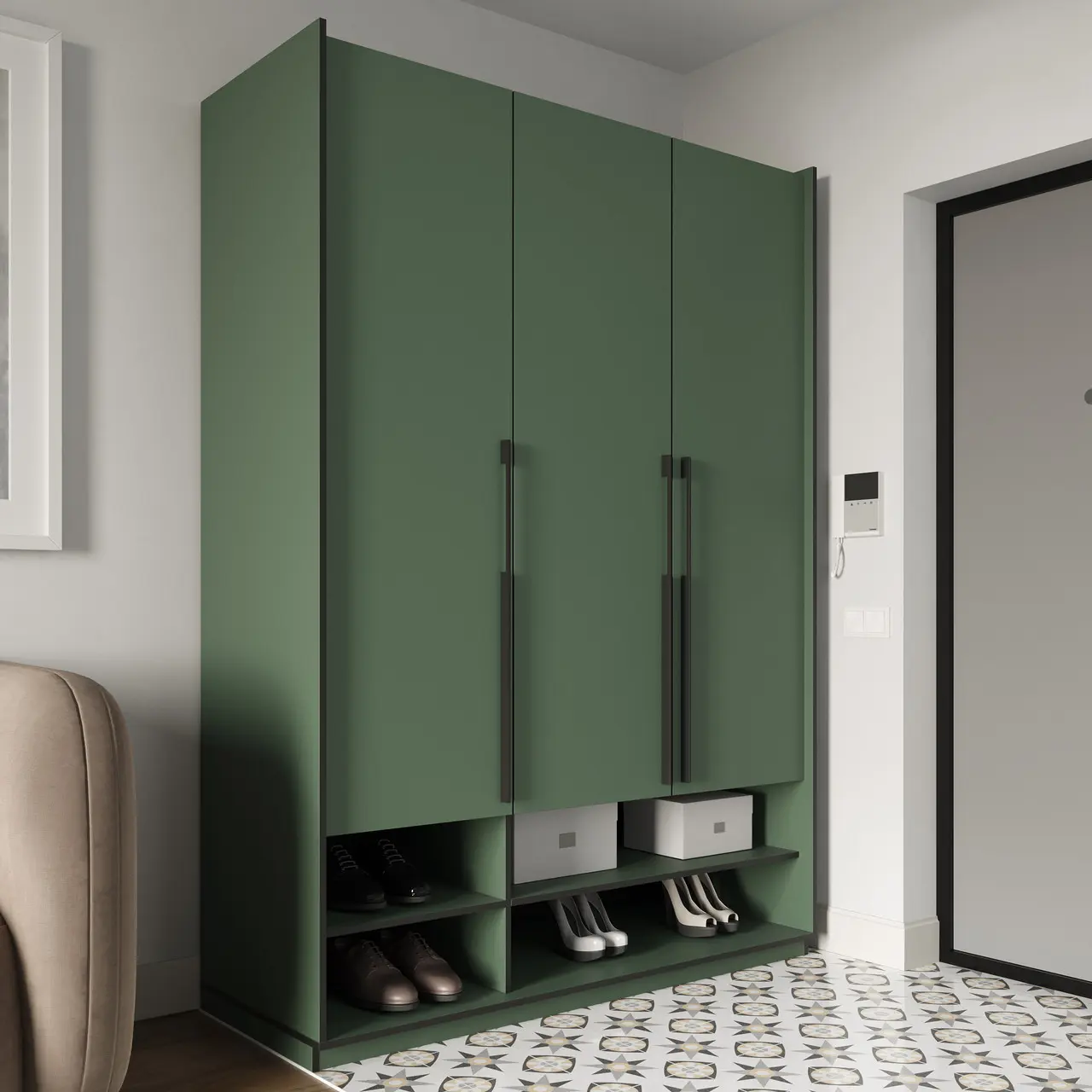 Шафа для одягу Flamecame з поличками та штангою на 3 двері у передпокій FR-06 Зелений Димчастий