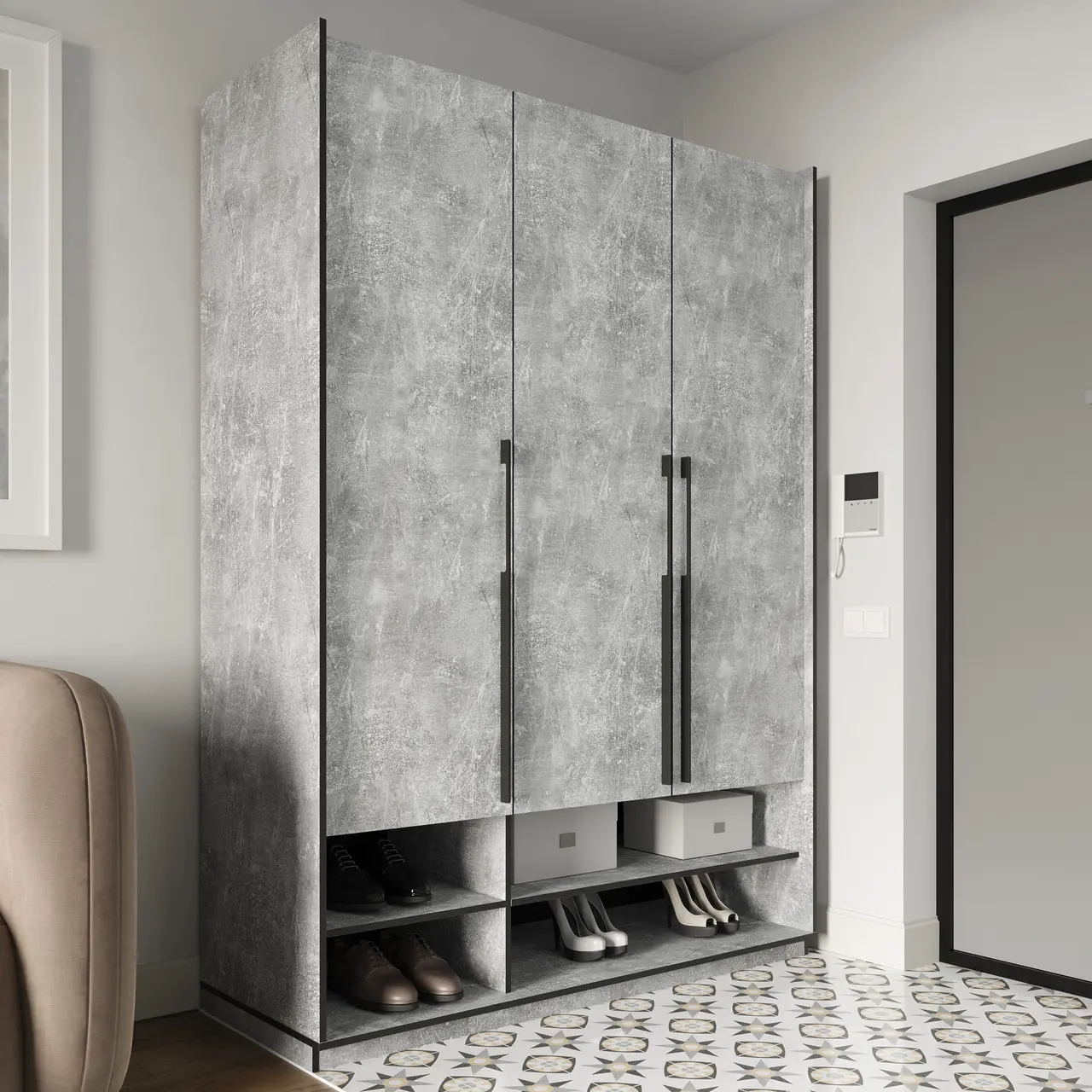 Шафа для одягу Flamecame з поличками та штангою на 3 двері у передпокій FR-06 Бетон