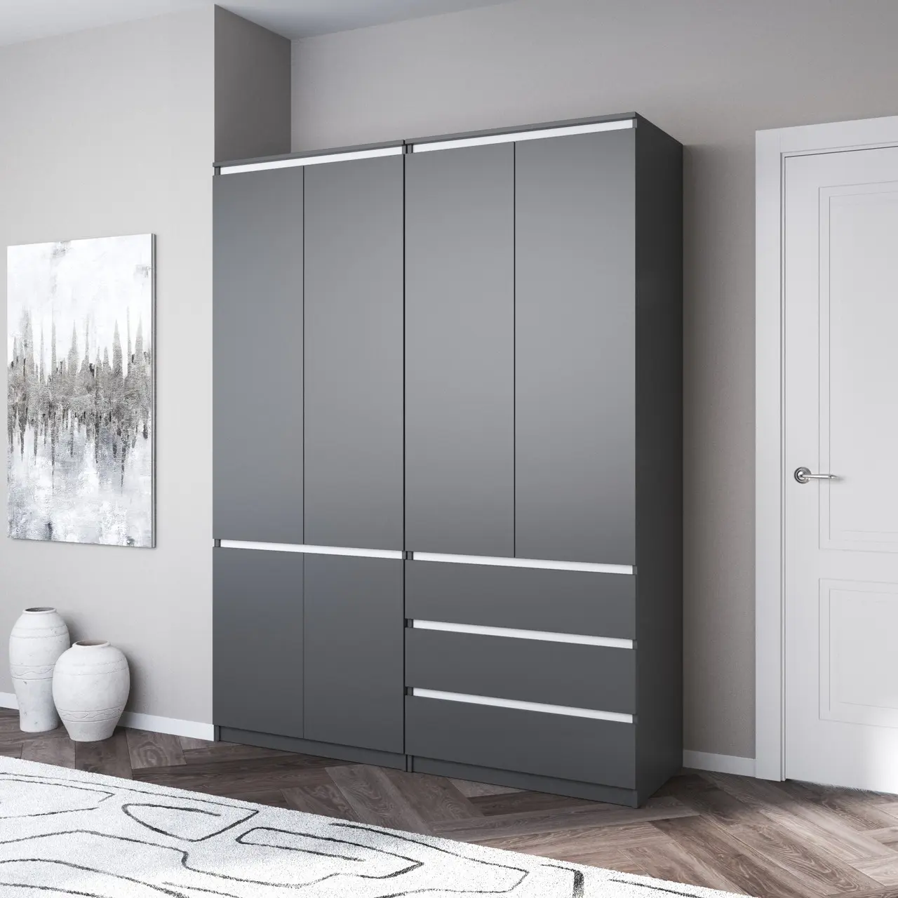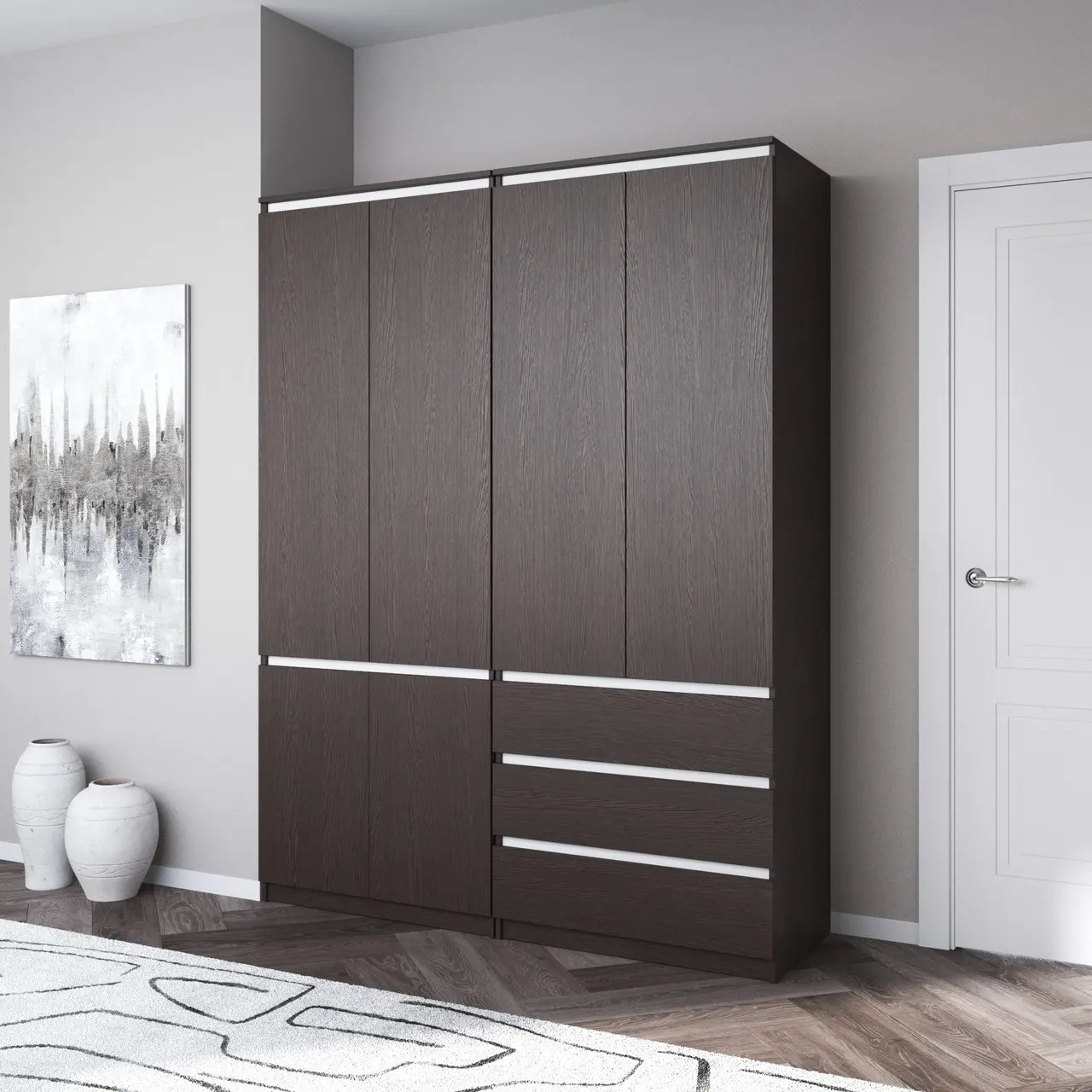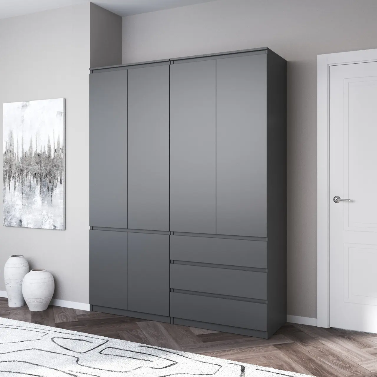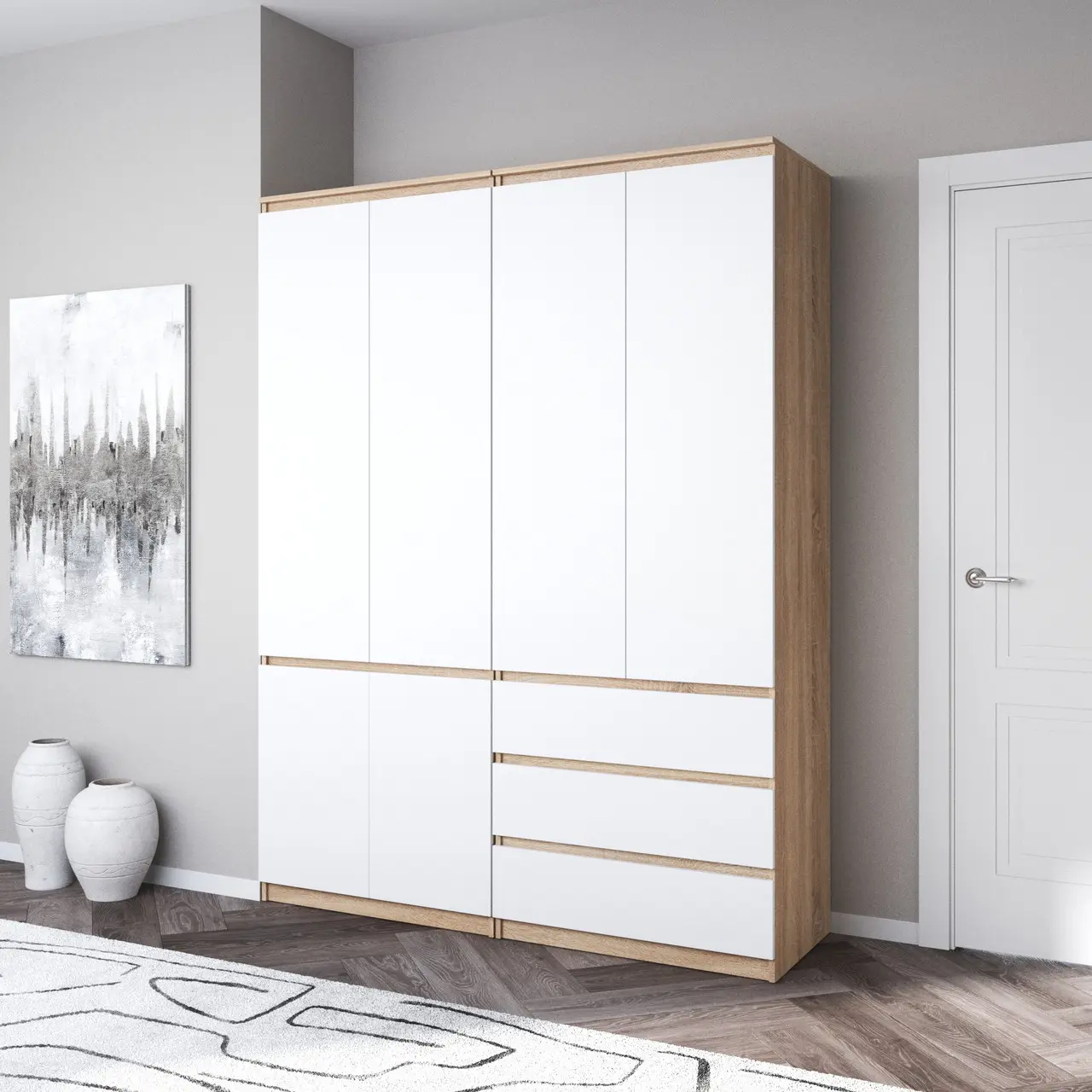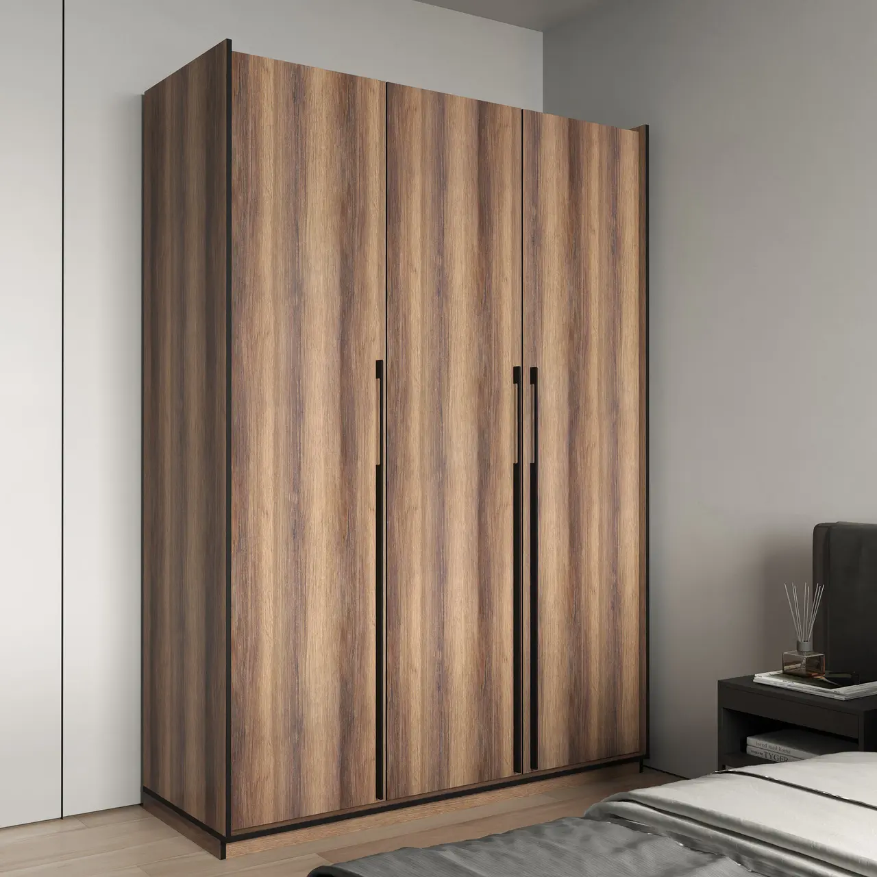 Шафа для одягу Flamecame у спальню зі штангою та поличками на 3 двері FR-16 Кверкус