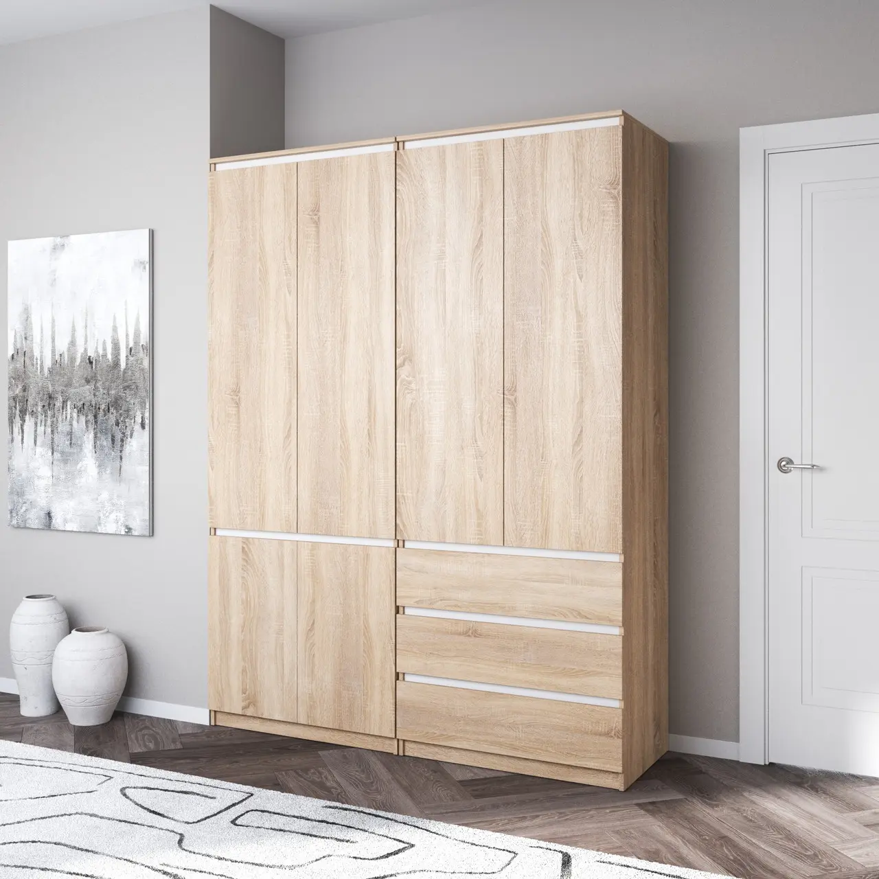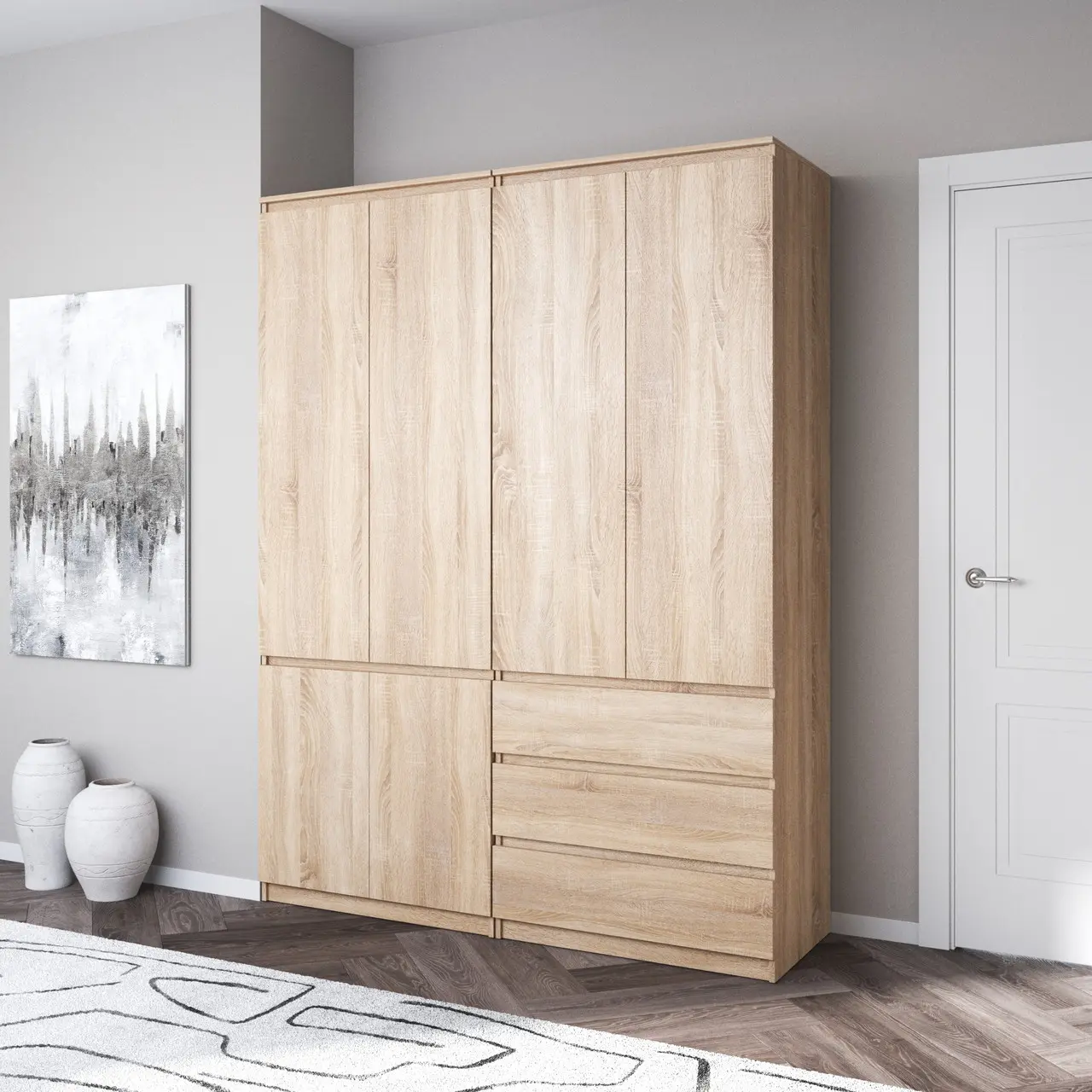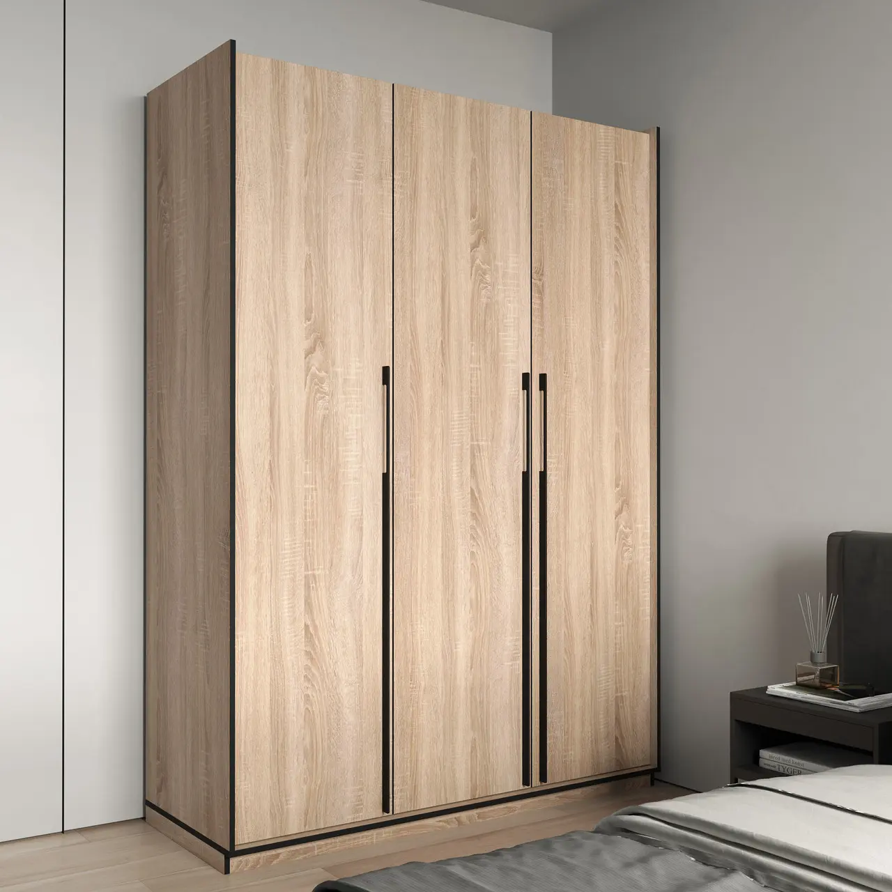 Шафа для одягу Flamecame у спальню зі штангою та поличками на 3 двері FR-16 Дуб сонома