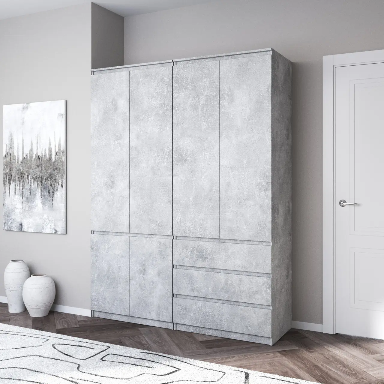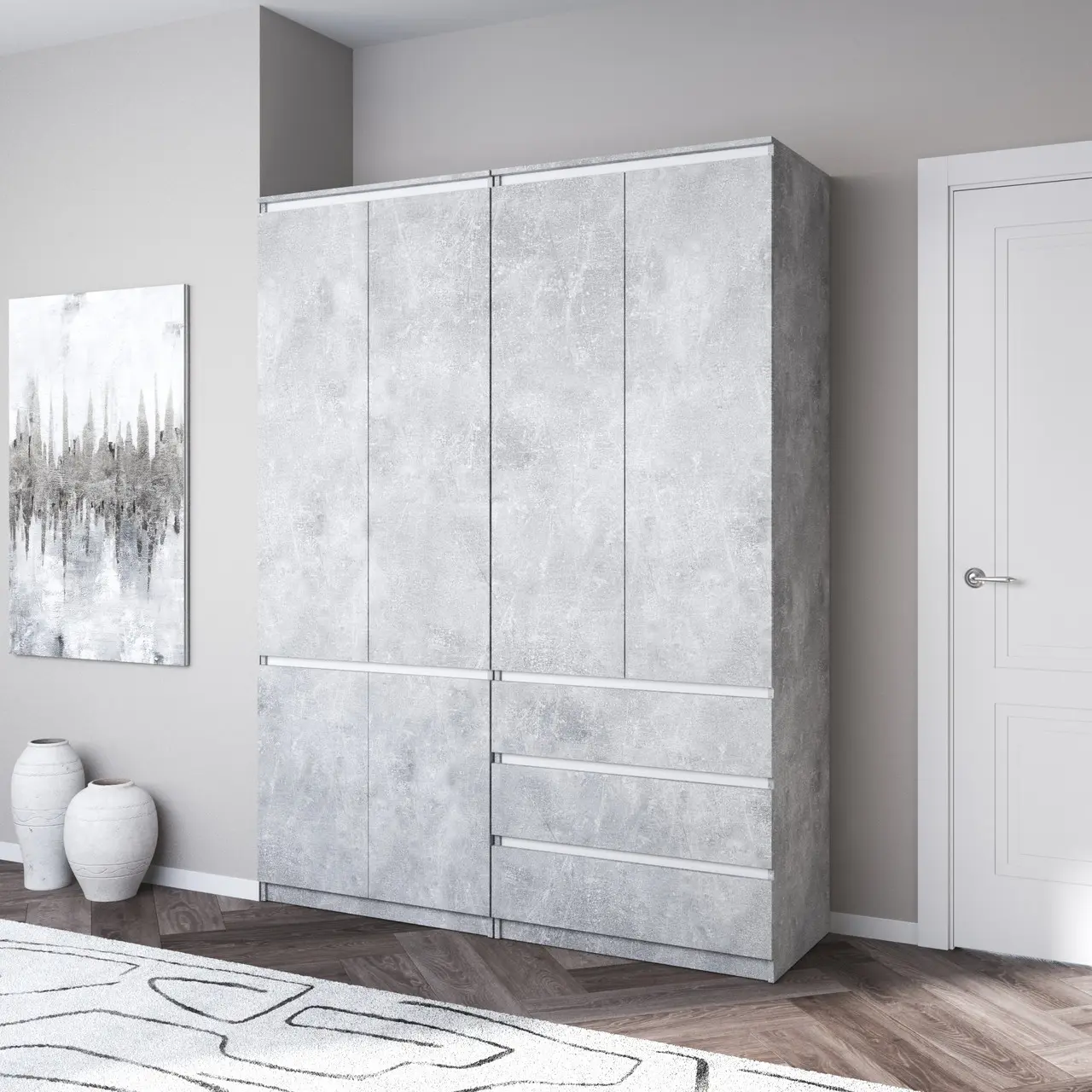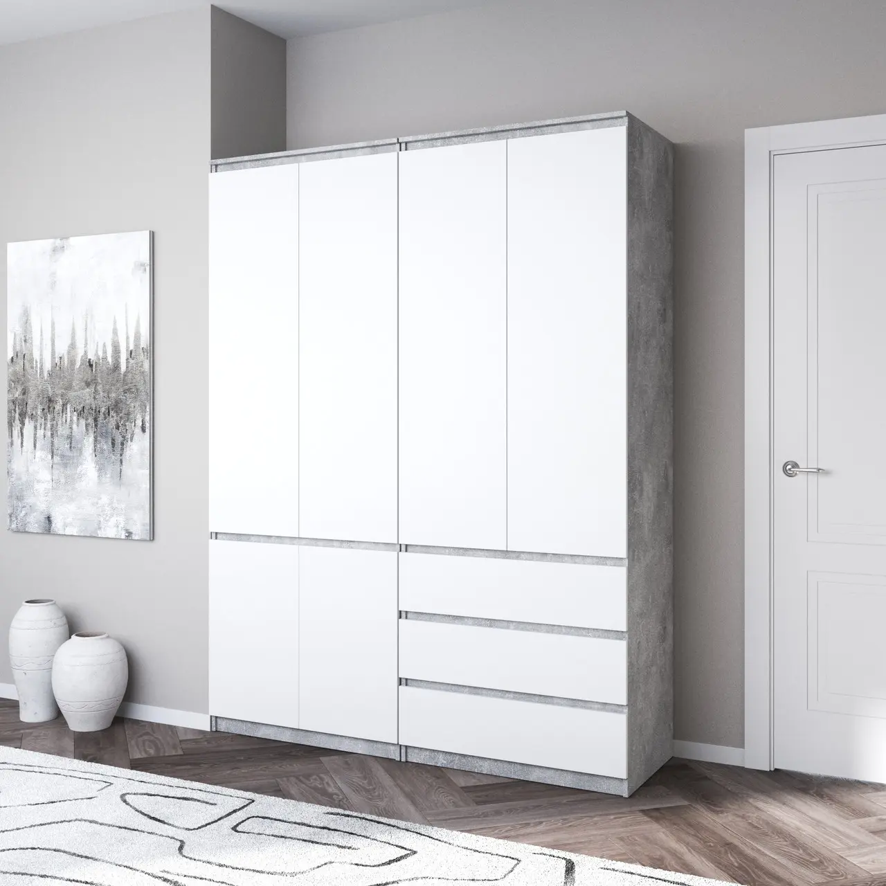 Шафа для одягу Vays, зі штангою та полицями, комплект з 2 шаф R10+R16 Бетон-Білий фасад