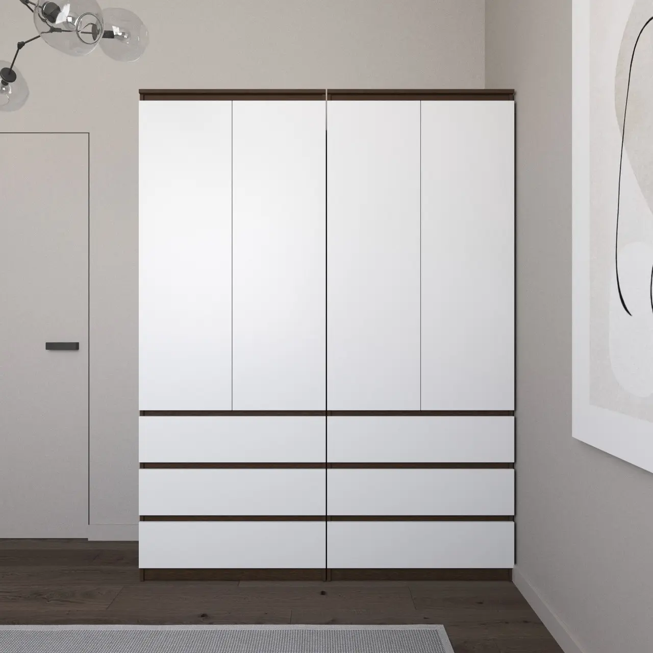 Шафа для одягу Vays зі штангою та полицями, 6 шухляд, комплект з 2 шаф R9+R16 Венге Темний-Білий фасад