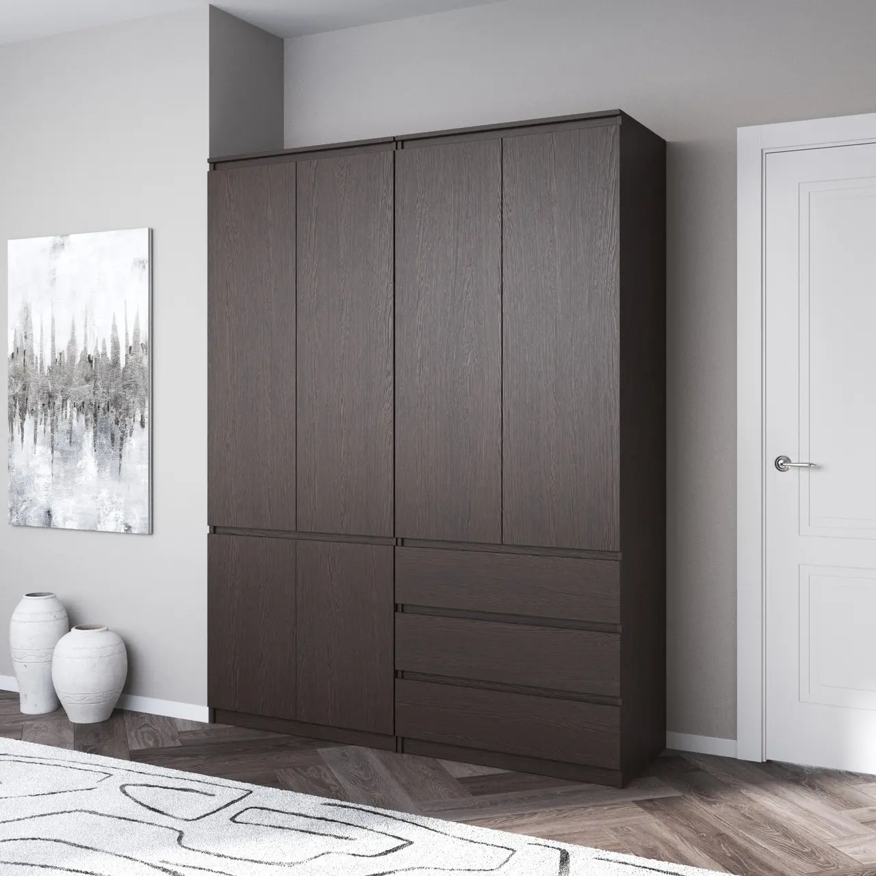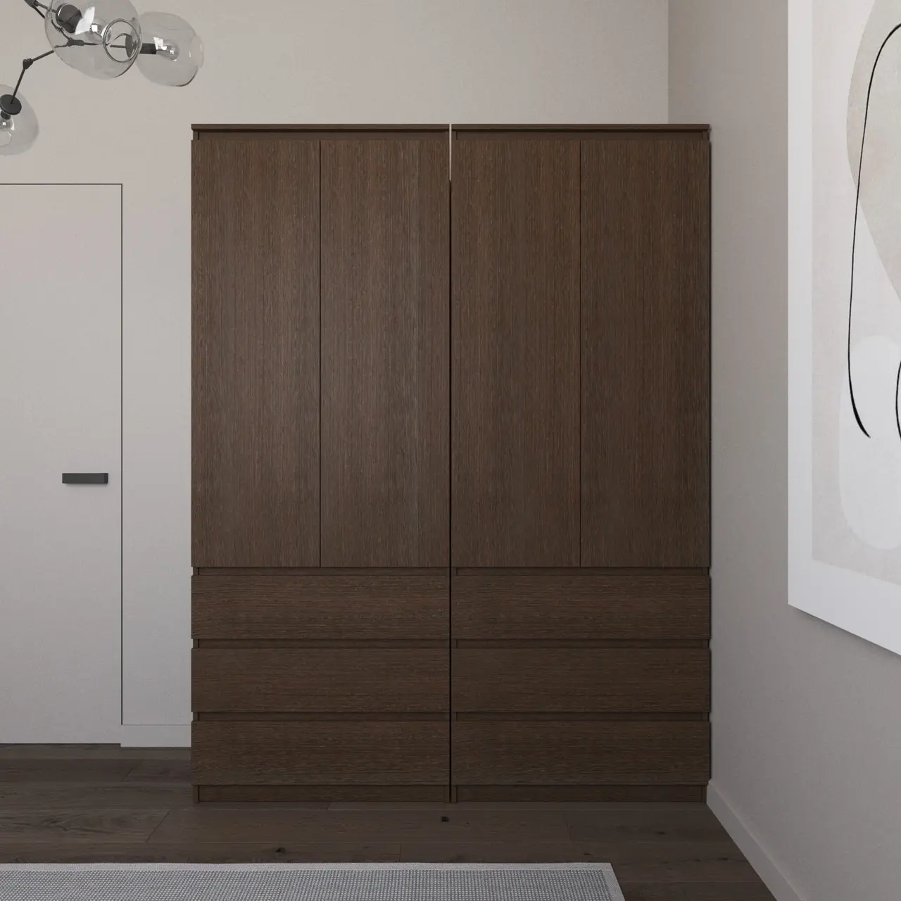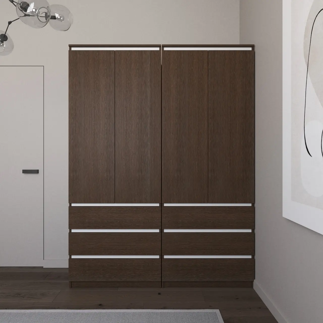 Шафа для одягу Vays зі штангою та полицями, 6 шухляд, комплект з 2 шаф R9+R16 Венге Темний