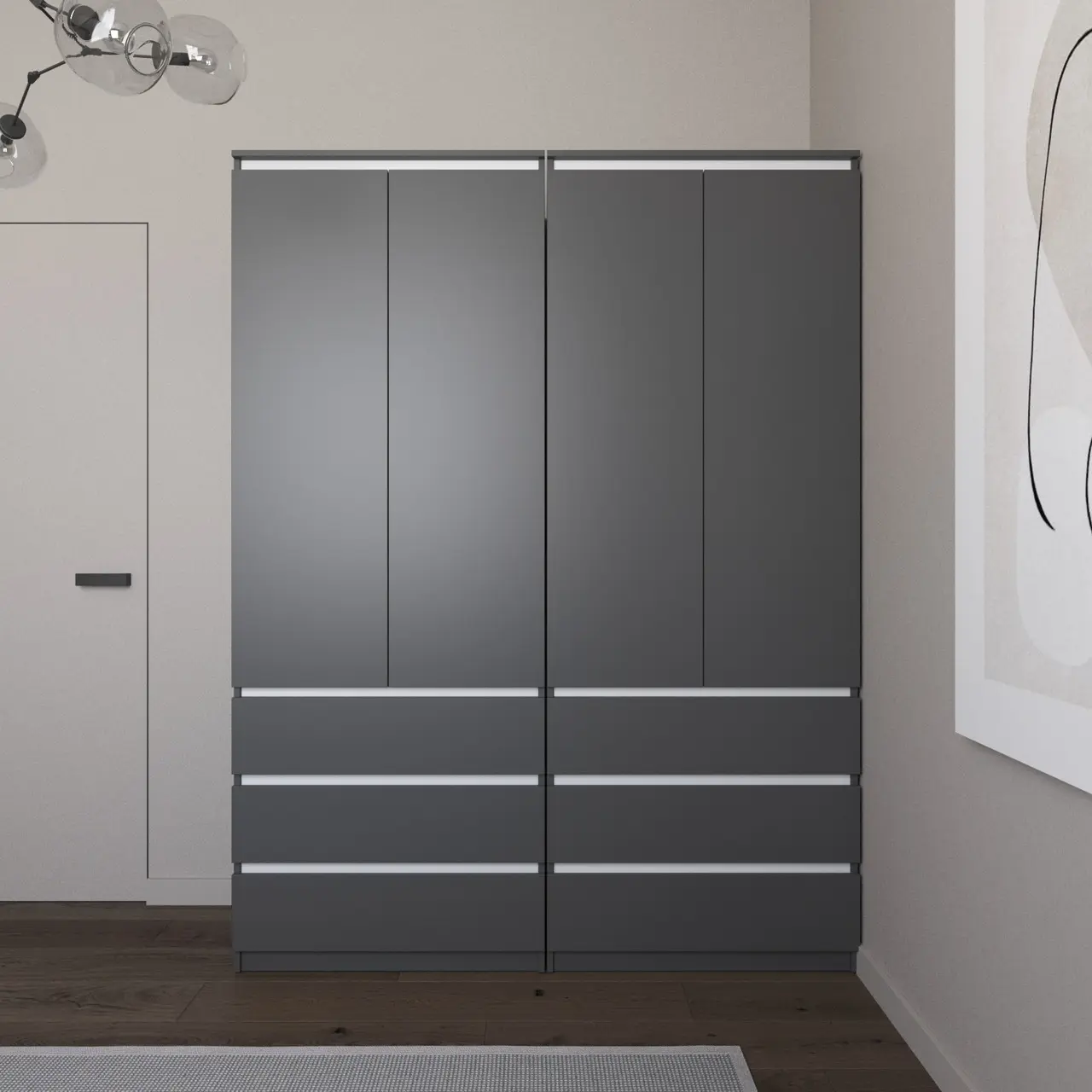 Шафа для одягу Vays зі штангою та полицями, 6 шухляд, комплект з 2 шаф R9+R16 Антрацит-Білі планки