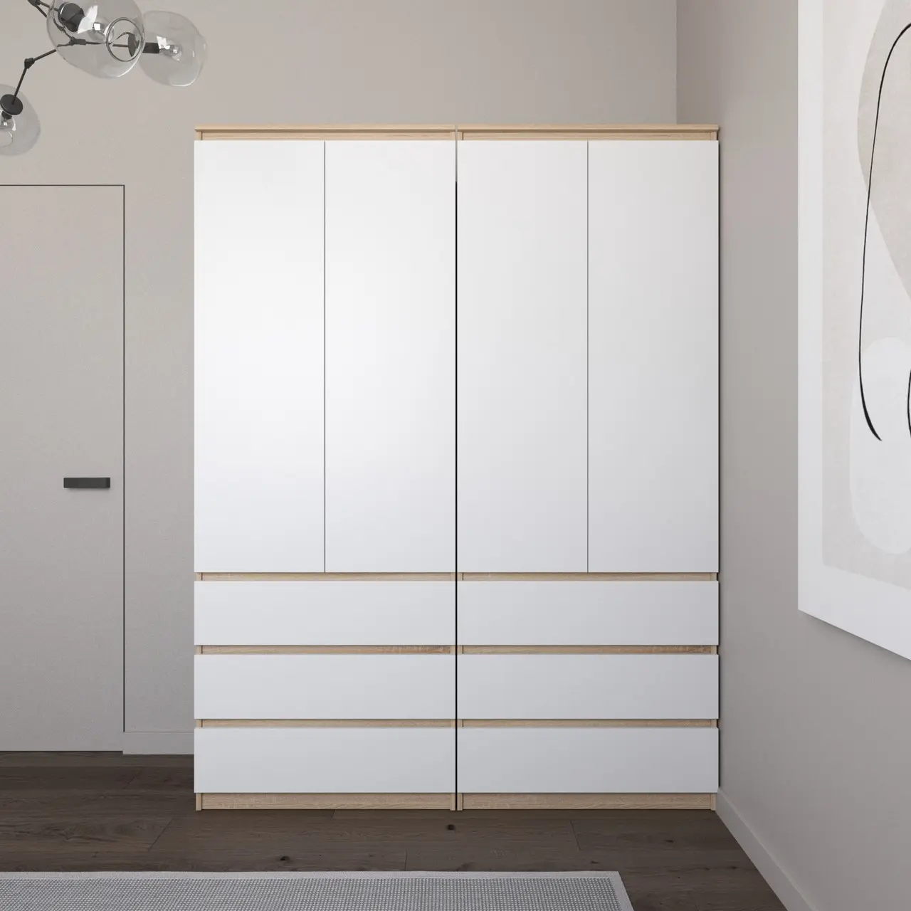 Шафа для одягу Vays зі штангою та полицями, 6 шухляд, комплект з 2 шаф R9+R16 Дуб Сонома-Білий фасад