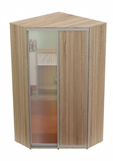 Шафа-купе дводверна кутова Алекса 110*110*230 см Дуб Сонома ДСП + Дзеркало Кут-1