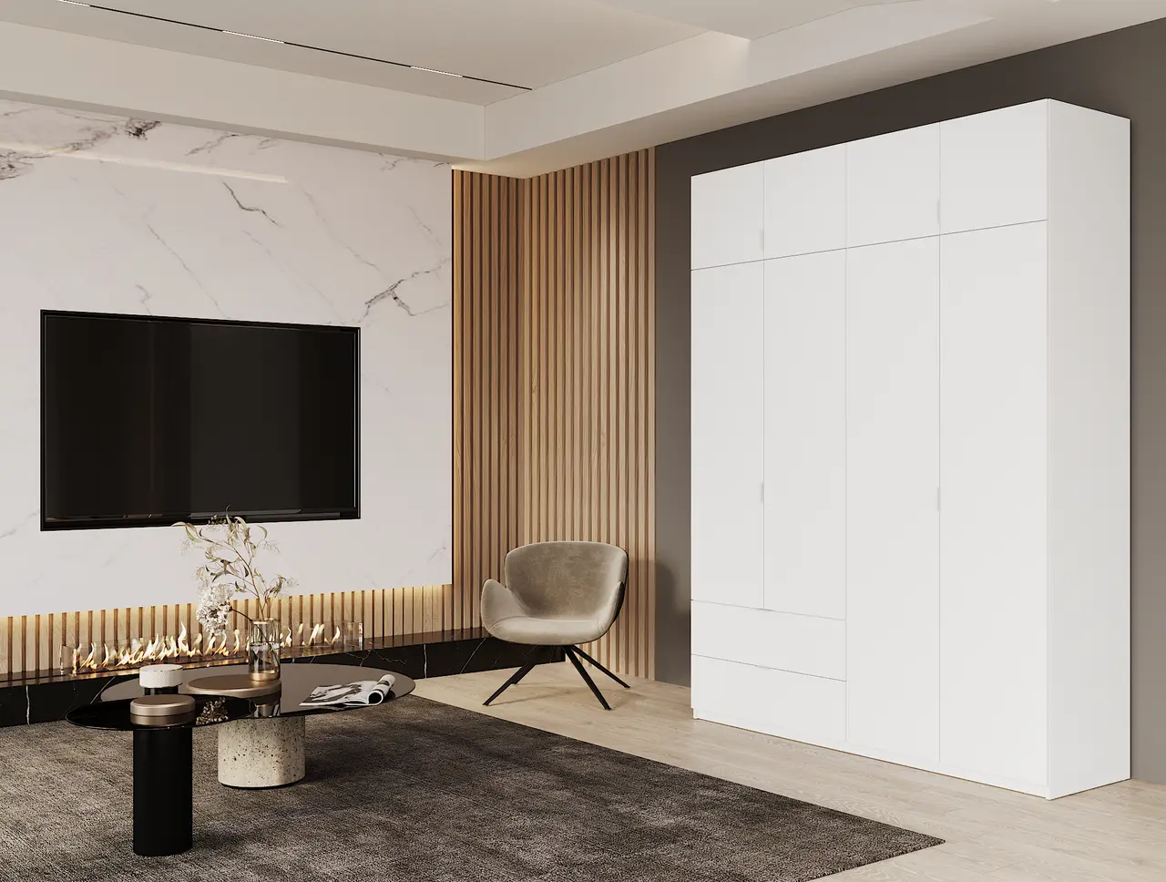 Шафа для одягу Flamecame у передпокій зі штангою та поличками на 4 двері FR-10 Білий