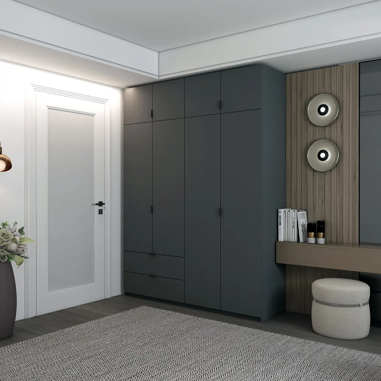 Шафа для одягу Flamecame у передпокій зі штангою та поличками на 4 двері FR-10 Антрацит