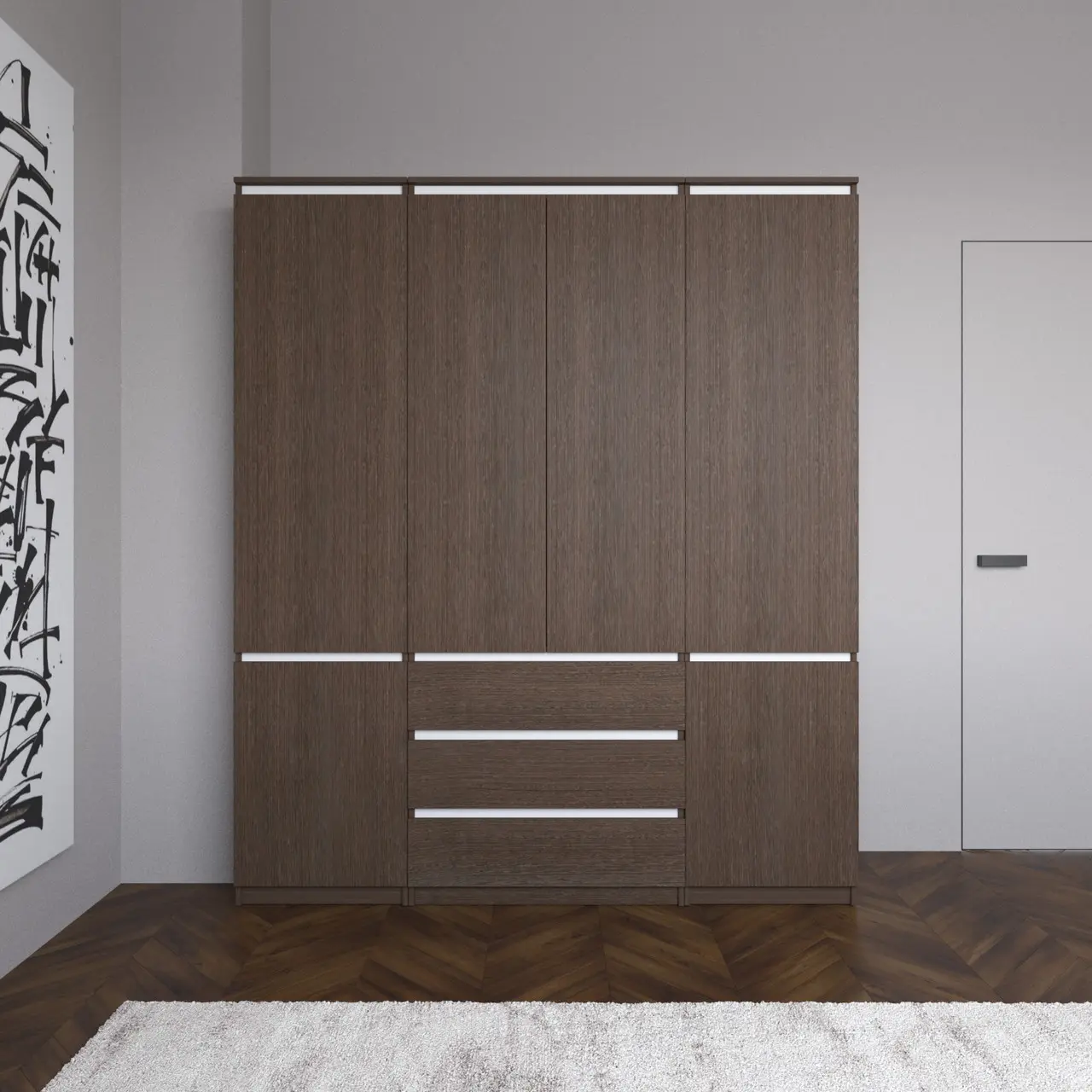 Шафа для одягу Flamecame з поличками на 4 двері у передпокій FR-07 Кверкус