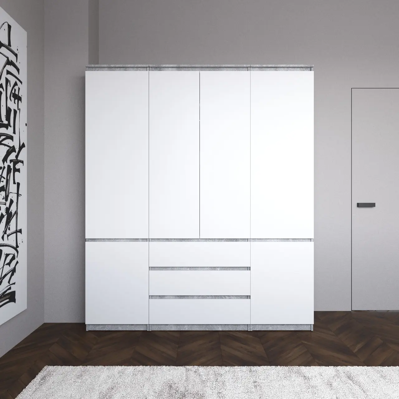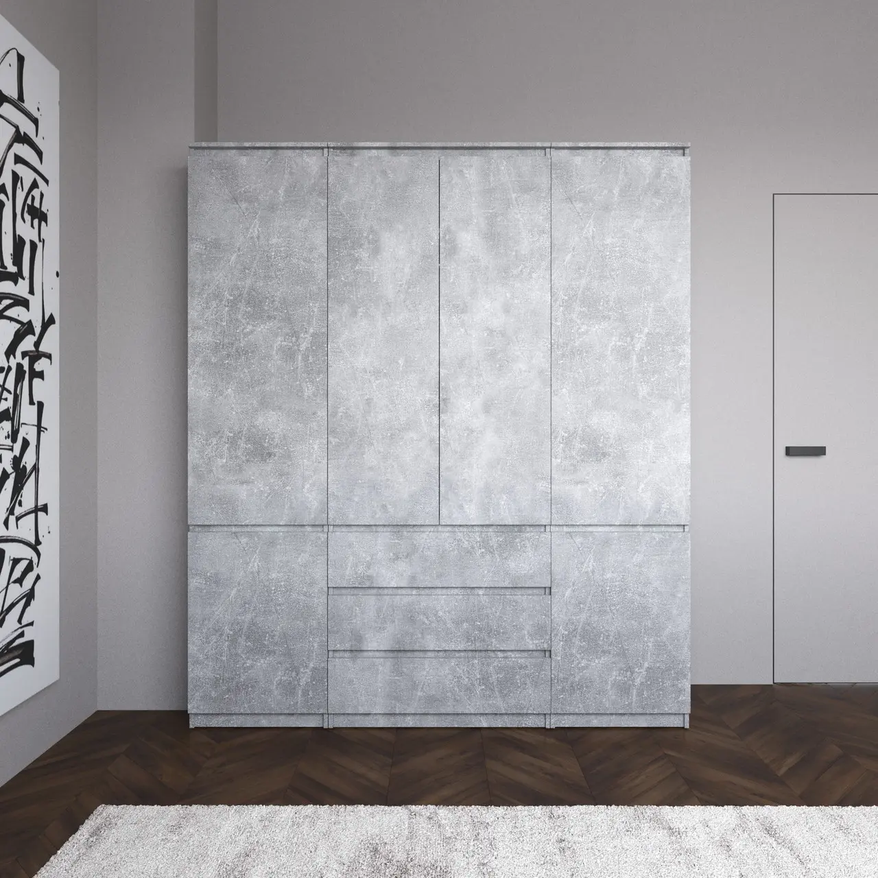 Шафа для одягу Vays зі штангою та полицями, 3 шухляди, комплект R9+R22-2 Бетон-Білий фасад