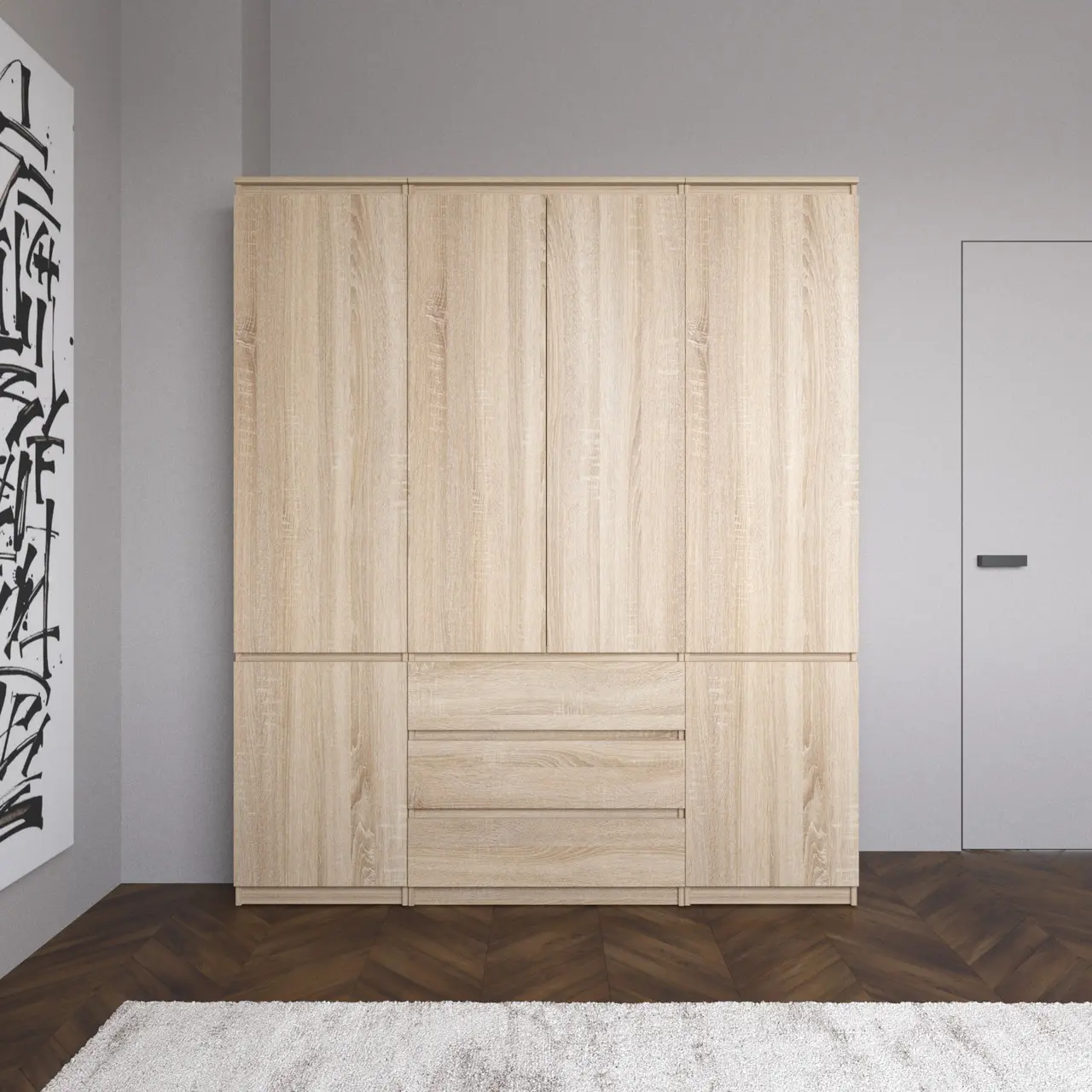 Шафа для одягу Flamecame з поличками на 4 двері у передпокій FR-07 Дуб сонома