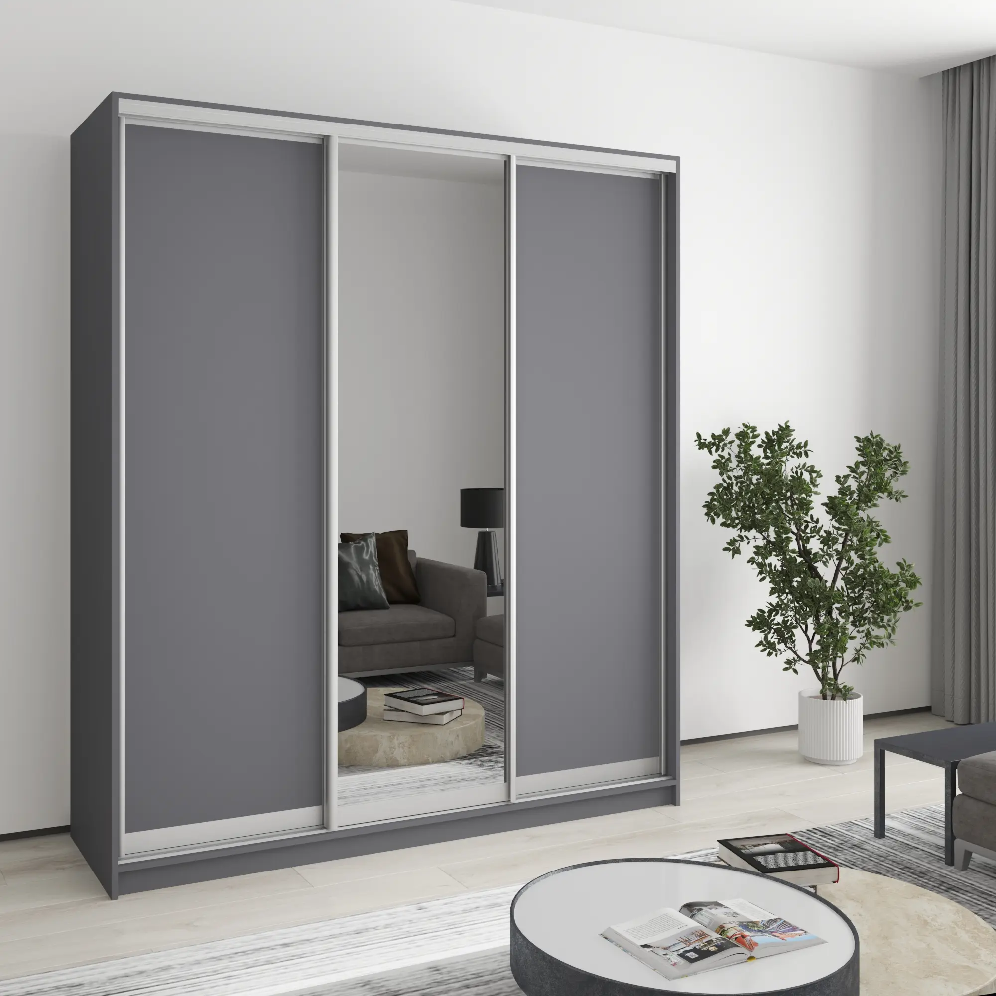 Шафа-купе тридверна MebelStar Комбо AL 2ДСП/Дзеркало 180x45x210 см Антрацит (MBS-3198)