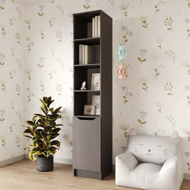 Пенал з відкритими полицями 1Д Лілу 40x40x210 см Сіра мишка (MBS-1398)