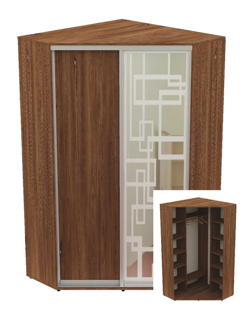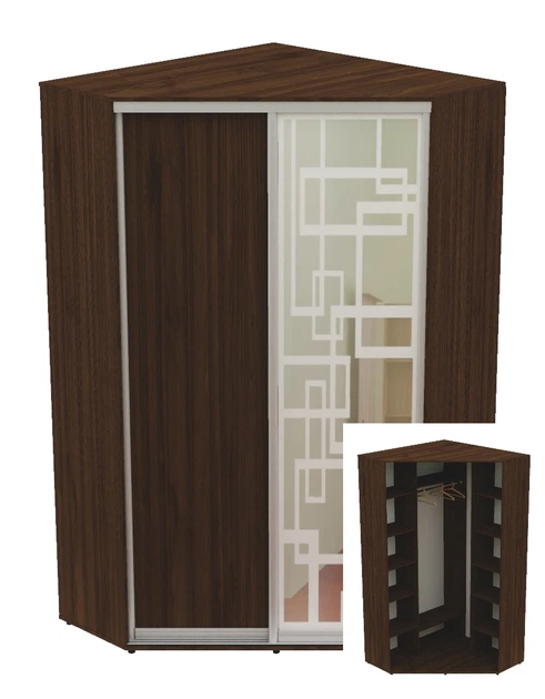 Шафа-купе дводверна кутова Алекса 110*110*240 Горіх селект кам'яний ДСП/Дзеркало з піскострумним малюнком Угол-1