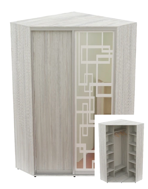 Шафа-купе дводверна кутова Алекса 110*110*240 Сосна Натті ДСП/Дзеркало з піскострумним малюнком Угол-1